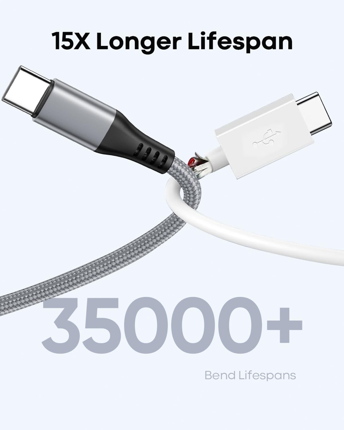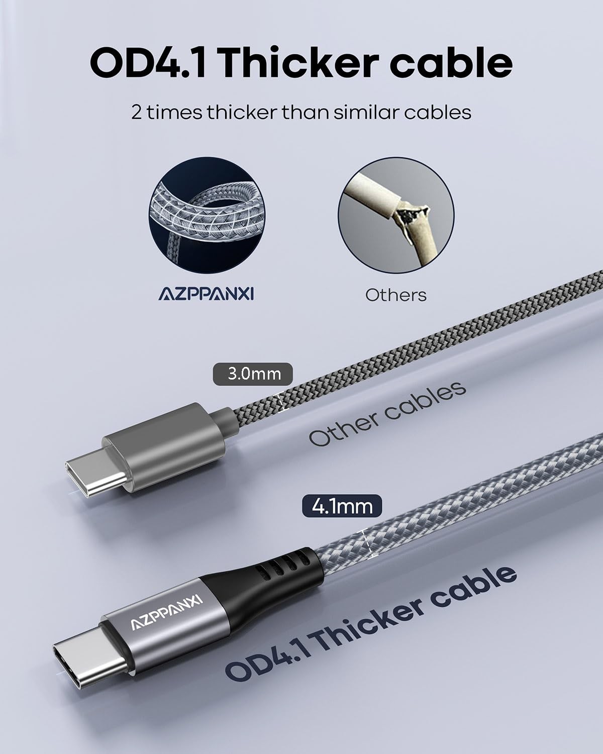 This USB-C to USB-C cable is ideal for extended-distance use with its 20-foot length. It is compatible with MacBook Pro, MacBook Air, iPad Pro, Google Pixel, Samsung Galaxy, and more. Key features include: ★Max output of 20V 3A 60W, supporting fast charging protocols like PD 3.0, QC 3.0, FCP, and AFC. ★The cable is constructed with nylon braiding and aluminum casing, ensuring durability and performance. ★Premium copper wire provides enhanced charging stability and higher efficiency, protecting against overheating, overcharging, and short circuiting. ★It enables super-fast charging for USB-C laptops, reaching 60% charge in just 45 minutes, and it can charge tablets and cellphones to 50% in only 30 minutes, making it perfect for devices like Samsung Galaxy and Google Pixel with PPS super-fast charging. Important Notes: ☞It is not a Thunderbolt 3 cable, so it cannot be used for video output. ☞This is a USB-C to USB-C cable, not a USB-C to USB-A cable, so you will need a USB-C charger for your device. ☞To ensure the charging speed of your device, please use the original USB-C wall charger or a high-quality charger that supports QC 2.0/3.0 and USB PD fast charging. Universal Compatibility: For MacBook and USB-C Laptops: MacBook Retina 12 inch MacBook Air (intel 2017, intel 2020, M1, M2) MacBook Pro 13 14 15 16 inch (2023, 2022, 2021, 2020, 2019, 2018, 2017, 2016) Surface (Using USB-C charging port), Dell, Lenovo, HP For iPad Models: iPad Pro 12.9 inch (6th, 5th, 4th, 3rd generation) iPad Pro 11 inch (4th, 3rd, 2nd, 1st) iPad Air 5th, 4th, iPad Mini 6, iPad 10 For Cellphones: Samsung Galaxy S23/S23+/S23 Ultra/S22/S22+/S22 Ultra/S21/S21+/S21 Ultra/S20/S20+/S20 Ultra/Note 20/Note 20 Ultra/Note 10/Note 10+/A80 Google Pixel 7 Pro, 7, 6a, 6 Pro, 6 LG, Moto, Fire HD 10, and any USB-C type C cellphones. Hey there, tired of constantly replacing flimsy USB-C cables? Our 20ft type c to type c cable boasts a beefy 4.1 millimeter diameter, surpassing market standards. (a cable with a diameter so beefy it puts the competition to shame!) With ample copper wiring and top-notch nylon braiding, say goodbye to the hassle and expense of frequent replacements. (Rest assured, you're investing in a 20ft usb c cable that's built to last.) [20FT (6M) SUPER LONG AND SUPER UNLEASHED]: The 20FT extra-long USB-C to USB-C Cable – Bringing freedom back to charging! This USB Type-C to USB Type-C cable is like your charger's jetpack, liberating you from the tyranny of socket proximity. No more being leashed to a wall outlet like a pet. Now you can roam your home, office, and even the great outdoors while your device gets its power fix. [FAST CHARGING FOR USB-C DEVICES]: Buckle up, because this 20 foot usb c to usb c is here to deliver a turbo-charged charging experience for your USB-C gadgets. With the ability to pump out a whopping 60W of power, it's like strapping a rocket booster to your laptop or smartphone. Plus, it's got a secret weapon – a built-in 56K-ohm resistor to protect your precious devices from the occasional charging mishap. [COMPATIBILITY LIST]: This 20ft long usb c to usb c cable Fast Charging Cable compatible with Samsung Galaxy S21 S21+ S21 Ultra Note10/Note 10 Plus/Note 20 S10/S10e/S10+/S9+/S8+, Google Pixel XL/2/2XL/3/3XL/3a/4 XL, Nexus 6P 5X, iPad Pro 2020, MacBook 12 inch, MacBook Pro 13", MacBook Air 13", Google Chromebook, Razer Blade Stealth 2018, ASUS ZenBook 3, Envy 13t, PS5 Controller,Switch;Smartphones,Camera.etc. [18-MONTH WORRY-FREE GUARANTEE]: At the core of our commitment to quality and customer satisfaction, we proudly back this USB C to Type C Cable 20ft with an extended 18-Month Worry-Free warranty, providing you with an extra layer of confidence in your purchase. Additionally, our dedicated customer service team is at your service 24/7. We value your peace of mind and aim to address any concerns or inquiries promptly, aiming to resolve your issues within a swift 12-hour timeframe.