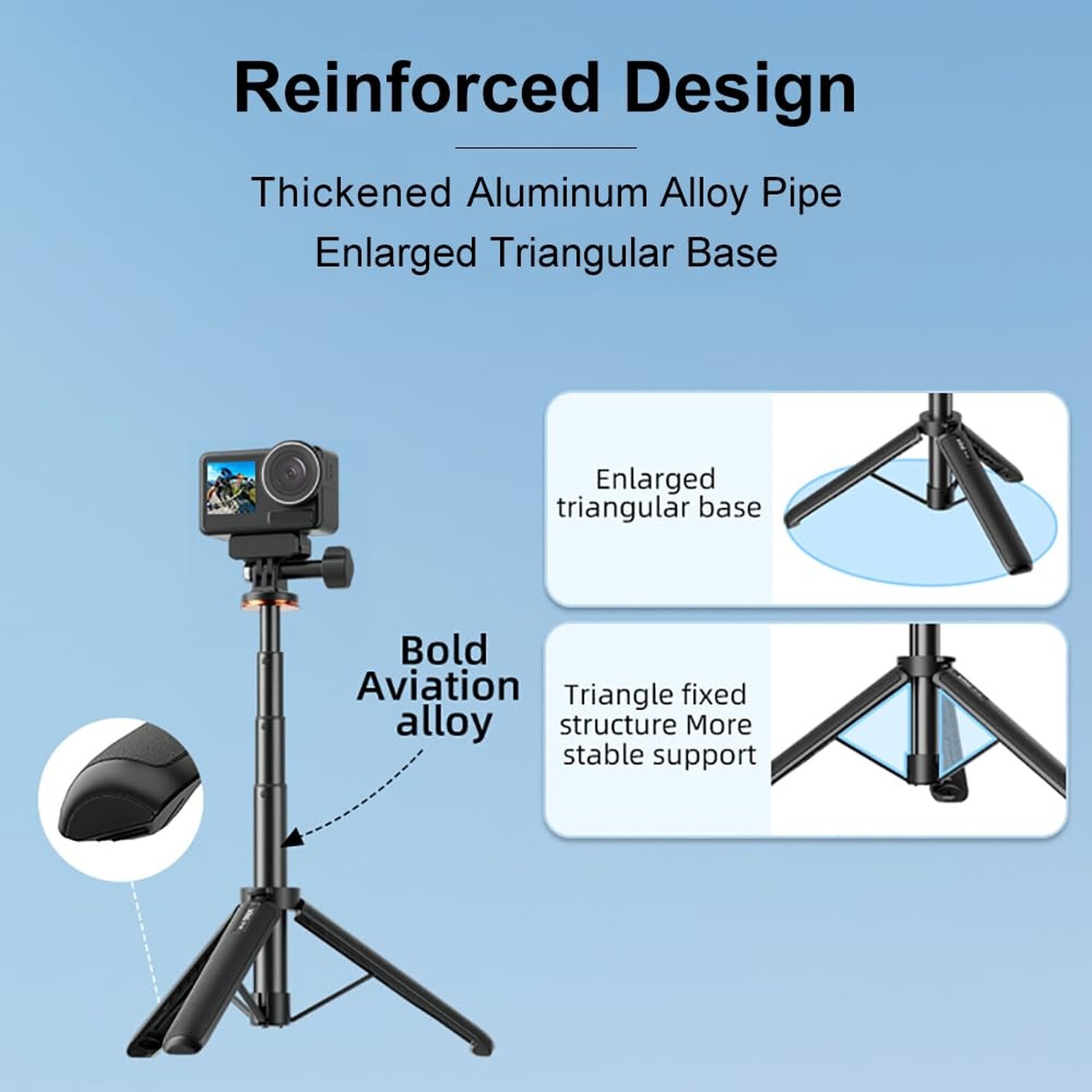 20inch Extendable Selfie Stick Tripod Stand Waterproof Hand Grip for Cell Phone and Action Camera, Compatible with Go Pro 12 11 10 9 8 7 6 5 4 MAX, DJI OSMO Action 4 3 2 Pocket 3 2 Insta360 Series Product Details Size: 20inch Brand: CAPART MPN: TPSB-50-140 UPC: 797059696567 EAN: 0797059696567 Brand: CAPART Compatible Devices: Camera Special Feature: slip_resistant, portable, Lightweight Compact Adjustable, lightweight Material: Aluminum, Acrylonitrile Butadiene Styrene (ABS) Item Weight: 161 Grams Maximum Height: 140 Centimeters Number of leg sections: 3 Folded Size: 19.5cm Manufacturer: CAPART UPC Package Dimensions: 7.09 x 1.89 x 1.69 inches Item Weight: 5.7 ounces Item model number: TPSB-50-140 Date First Available: April 10, 2024 Manufacturer: CAPART Country of Origin: China 1- Selfie Stick with Tripod Stand: Specially designed for cell phone and action cameras, compatible with Go Pro 12 11 10 9 8 7 6 5 4 Max, DJI OSMO Pocket 3 2, Action 4 3 2, Insta360 X4 X3 X2 GO 3 3S ... 2- Extendable Length: 19.5cm~51cm (7.68~20inch) || Lightweight: 161g (5.7 oz.) 3- Material: Aerospace-Grade Aluminium Alloy + ABS 4- Duarable and Stable: Reinforced Design, thickened aluminum alloy pipe + enlarged triangular base 5- Anti-Skid: The handle has a non-slip texture for better hand feel. 6- Waterproof: The stick also supports underwater use as Hand Grip for floating vlogging. 7- Package List: 1x Extendable Selfie Stick with Tripod NOTE: Camera, 1/4" camera adapter and other Accessories NOT included!!! NOTE: Camera, 1/4" camera adapter and other Accessories NOT included!!!