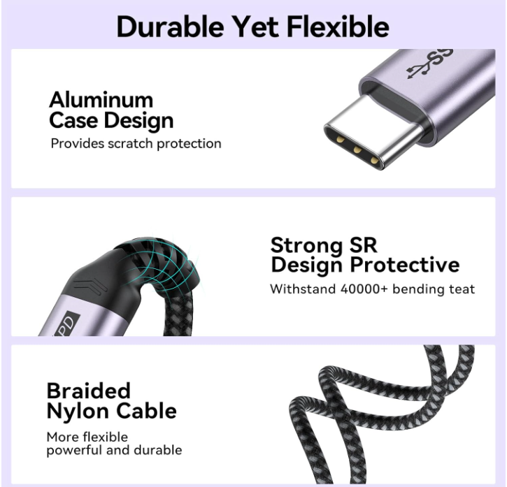 USB C Extension Cable 20ft, Upgraded USBC Extender 100W Charging 4K@60Hz Display 400Mbps Fast Transfer: Updated the wire design to achieve higher transmission speed. The maximum data transmission speed support about 400Mbps. It takes 3 seconds to transmit a 1g file using the usb c to usb c extender cable. 100W Fast Charging: Support 100W fast charging technology. Due to the length issue, using usb-c extender to charge speed will be affected, depending on the actual charging speed of your device and cable be extended. Superior Durabillity: Our usb c extension cord made of aluminum alloy shell and Nylon Braided thread body. The aluminum alloy shell is resistant to corrosion and oxidation and has better heat dissipation performance. The Nylon Braided thread body is tensile and pulls to minimize wear. Wide Compatibility: The usb c cable extender perfect compatibility with most USB C devices, such as desktop computers, laptops, mobile phones, monitors, projectors, iPad, macbook, Surface Go and more. Terms of Sale and Feedback: Feedback is extremely important to us and eBay If you are satisfied with our transaction, please take a moment to leave Positive Feedback. YOUR Satisfaction is our #1 Priority! If there are any issues, PLEASE contact us BEFORE leaving a neutral or negative rating so that we may resolve any concerns. We PROMISE we can make you happy if you give us a fair chance.