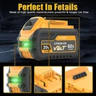 Description Replacement for Dewalt 20V/60V MAX* Flexvolt Batteries: DCB609, DCB609-2 DCB606, DCB606-2, DCB612, DCB612-2, DCB615, DCB615-2 and more. Replacement for Dewalt 20V MAX* XR Batteries: 20V MAX* battery: DCB206, DCB204, DCB208, DCB209, DCB230, DCB240, DCB204-2, DCB205-2, DCB206-2, DCB209-2, N123283, N123282, DCB201-2, DCB200, DCB201, DCB203, DCB204, DCB181-XJ, DCB181, DCB180 and more. Compatible with Dewalt 20V/60V MAX* Battery Chargers: DCB118, DCB1112, DCB104, DCB112, DCB115, DCB105, DCB107, DCB101 and more. Compatible with DeWalt 60V MAX* tools DCS578X2, DCBL772X1, DCK299D1T1, DCS578B, DCS690X2, DCC2560T1, DCG414B, DCD460T2, DCG418X1, DCS389B, DCS388T2, DCH481B, DCS7485B, DCD130B, DCS520T1, DCS388T1, DCS520B, DCBL772B, DCG414T2, DCS574W1, DCS388B, DCS389X1, DCD470B, DCG418X2, DCS575B, DCS7485T1, DCS373B, DCBL770X1 and more. Compatible with DeWalt 20V MAX* tools DCD Series: DCD740, DCD740B, DCD780, DCD780B, DCD780C2, DCD780L2, DCD785C2, DCD785L2, DCD980L2, DCD980M2, DCD985B, DCD985L2, DCD985XR, DCD985L2, DCD785C2, DCD780C2, DCD780B, DCD740C1, DCD740B and more. DCF Series: DCF883B, DCF883L2, DCF885, DCF885B, DCF885C2, DCF885L2, DCF895B, DCF895C2, DCF895L2, DCF895L2, DCF895C2, DCF895B, DCF885L2, DCF885C2, DCF885B, DCF883L2, DCF883B, DCF880C1-JP, DCF883B, DCF880C1-JP and more. DCS Series: DCS331B, DCS331L1, DCS331L2, DCS331N, DCS380B, DCS380L1, DCS381, DCS391B, DCS391L1, DCS393, DCS393, DCS391L2, DCS391L1, DCS391B, DCS381, DCS380L2, DCH214L2 and more. DCG Series: DCG412, DCG412B, DCG412L2 and more. Battery Care Tips: Charge your battery at least once every 2 months if not using the battery. Do not constantly use high power mode, it will speed up degradation of the battery. Avoid long-term over-discharge damage to the battery, after the battery is fully discharged, please recharge the battery in time. Avoid recharging immediately after a full discharge. Allow it to cool for a few minutes to help prolong battery life. Avoid using the cleaner with the battery flush to a surface. This will help it run cooler and prolong battery run time and life. Package inclu d ed:( By Your Choice ) 2Pack DCB609 DCB606 DCB612 12Ah Battery for Dewalt 20v/60v Max Flexvolt Battery Or 1Pack DCB609 DCB606 DCB612 12Ah Battery for Dewalt 20v/60v Max Flexvolt Battery NOTE: 1. The battery must be FULLY charged before first use. 2. The battery is stored in a cool and dry place. 3. Do not Separation, extrusion, and impact. 4. Do not put battery into water and fire. 5. Keep away from children. After-sale Service: 60 days money back and 10 years limited warranty Hassle-free friendly customer service through email. * Any problems pls contact us at any time before leaving a negative/neutral feedback. Many thanks to you. On Sep 26, 2024 at 19:35:46 PDT, seller added the following information: