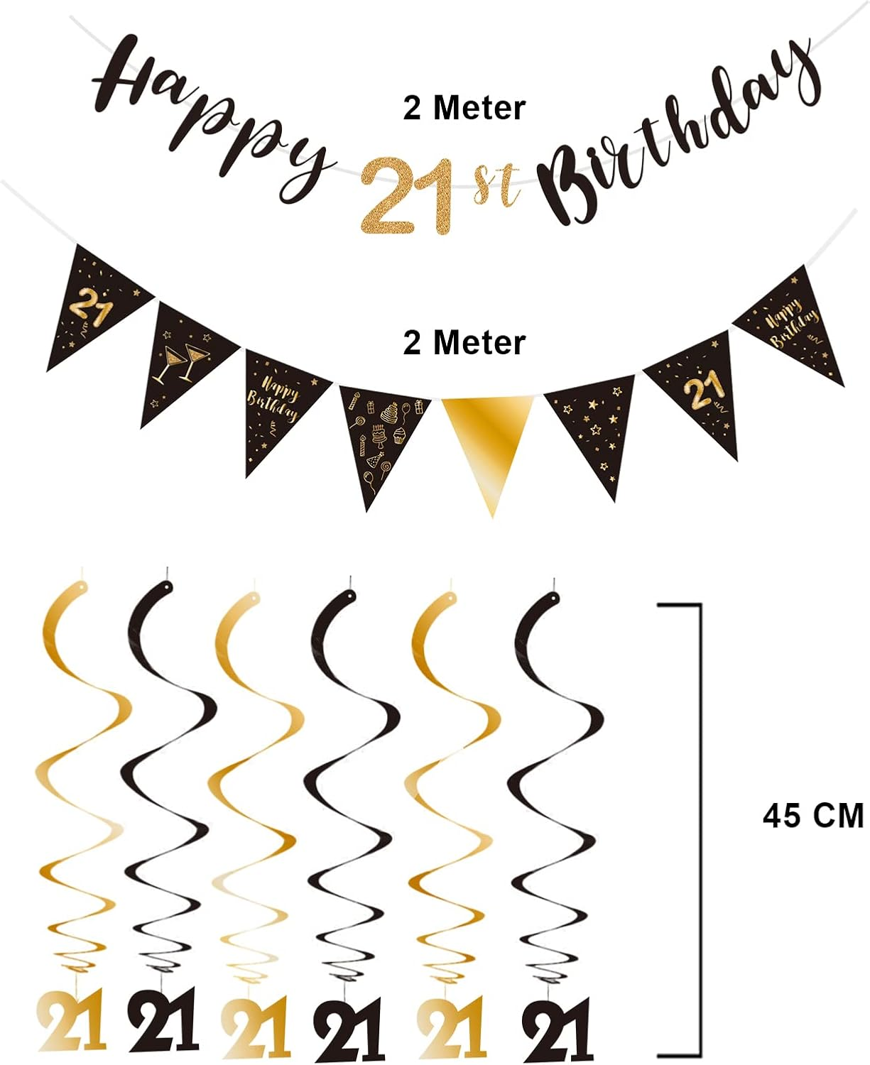 This 21st birthday decoration kit is fantastic! The black and gold theme looks so elegant, and the banners and swirls are high-quality and easy to set up. It made the party space look amazing—definitely worth it for a special celebration! Fast shipping and great customer service too.