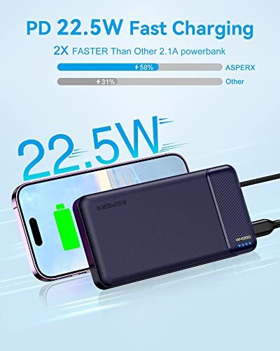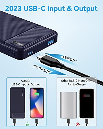 AsperX Portable Charger 22.5W 10000mAh, Power Bank Fast Charging, USB C Output, External Battery Pack Portable Phone Charger for iPhone, Android and More Deep Blue 【22.5W Fast Charging】AsperX 22.5W power bank is not only equipped with the most advanced PD3.0 and QC4.0 fast charging technology, the output power is also upgraded to 22.5W, which can incredibly fast charging your Phone from 0 to 58% in 30mins, 2X faster than traditional 2.4A chargers. 【2023 Upgraded Version USB-C Input and Output】Different from most chargers that only have USB-C input, AsperX PD 22.5W power bank has a USB-C input and output port, perfect for your new iPhone, iPad and all upcoming Introduced USB-C devices. 【Long Time Power Reserve】AsperX 10000mAh portable phone charger is small in size but powerful in power. It can provide 3.6 charges for the iPhone 8, 13.2 charges for the AirPods Pro, and 1.2 charges for the iPad. 【Charge Two Devices Simultaneously】AsperX portable battery charger is equipped with one USB-C port and one USB-A port, which can charge two devices at the same time. Dual-port design allows you to share portable power with family and friends. 【Wide Compatibility】AsperX cell phone battery pack is suitable for all devices from large iPads to small AirPods. Additionally, it comes with an adaptive trickle charge mode that can provide optimized power to small devices without compromising battery life. SHIPPING - We offer FREE shipping on all orders! - We ship within 3 business days of payment, usually sooner - We use a selection of shipping services such as UPS, FedEx, USPS etc - We only ship to the lower 48 states, no APO/FPO addresses or PO Boxes allowed International buyers – please note: Import duties, taxes, and charges aren't included in the item price or postage cost. These charges are the buyer's responsibility. - Please check with your country's customs office to determine what these additional costs will be prior to bidding or buying. - We have confidence in our products, but if you are not fully satisfied please contact us within 30 days of purchase and you will get full refund. * Order Cancellation Policy ** You can return a product for up to 30 days from the date you purchased it. 1. The seller reserves the right to cancel the special case only due to eBay cancellation fee. 2. The decision of seller is the final. 3. The seller will respond to the cancellation request within 2 business days. Please wait for the result of cancellation. 4. In case the cancellation is not completed by some reasons, the buyer can follow the options below to get the refund. 4.1 The buyer can reject the item when it arrives. 4.2 The buyer can send the item back to the seller within 30 days If the buyer receives item (USA Shipment ONLY). The seller will provide the FREE return label to the buyer when the buyer opens " Return Item" case on eBay by using the reason as "Change my mind" ONLY. 5. When buyer has placed the order. The order will be processed and completed by automatic warehouse system within 5 minutes. In case that buyer sends the cancellation request after 5 minutes of placing the order, the request will be rejected. **Sending direct message to cancel the order is not allowed for every case.* Return Policy For the return case - If buyer would like to return the items for refund or replacement, please CONTACT SELLER to receive the free return label from seller. The refund or replacement will be processed with the tracking number of return label which is provided by seller only. The other ways of return which are not approved by seller will not be processed for the refund or replacement. CUSTOMER SERVICE - We try our best to make sure every customer is completely satisfied. - If there's a problem, feel free to message us! - We're happy to help.