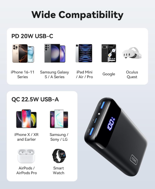 INIU Portable Charger, 22.5W 20000mAh USB C in & Out Power Bank Fast Charging, PD 3.0+QC 4.0 LED Display Phone Battery Pack Compatible with iPhone 16 15 14 13 Pro Samsung S23 Google iPad Tablet, etc Connector Type USB Type C, USB Type A Brand INIU Battery Capacity 20000 Milliamp Hours Color Black Special Feature LED Indicator Lights, Lightweight, Flashlight, Fast Charging About this item ● [From INIU--the SAFE Fast Charge Pro] Experience the safest charging with over 38 million global users. At INIU, we use only the highest-grade materials, so we do have the confidence to provide an industry-leading 3-Year iNiu Care. ● [3X Ultra-Fast Charging] The newest 22.5W Power Delivery 3.0 USB C port, plus dual QC 4.0+ USB outputs, to revolutionize your experience of speed, especially bring iPhone 13 from 0 to 52% just in 25mins, 3X faster than regular 1A chargers. ● [7 Days of Safe Power] Enjoy a full week’s worth of charging capacity with the airline-approved 20000mAh power bank. ● [Even Wider Compatibility] Unlike the market’s most power banks incapable of charging low-current accessories, INIU PD3.0 Super portable charger can work with not only all the phones, tablets but your smaller devices like AirPods, Bluetooth headphones, fitness trackers, smartwatches, etc. . We offer FREE shipping on all orders! . We ship within Five business days of payment, usually sooner. . We use a selection of shipping services such as UPS, FedEx, USPS etc. . We only ship to the lower 48 states, no APO/FPO addresses or PO Boxes allowed. . Local pickups and combined shipping options are not provided at this time. . Your satisfaction is a wonderful reward for our efforts. Please assist us by leaving a positive review if you feel pleased with our service. . In the event that you encounter any difficulties related to your order, please do not hesitate to reach out to us directly through the Messaging system on the Ebay platform. Kindly consider opening a COMPLAINT or a RETURN REQUEST as a last resort, only after all other possible measures have been attempted and we have been unable to provide you with assistance. . We will get in touch with you within 24 hours and make every effort to ensure your satisfaction. . Please rest assured of our service quality.