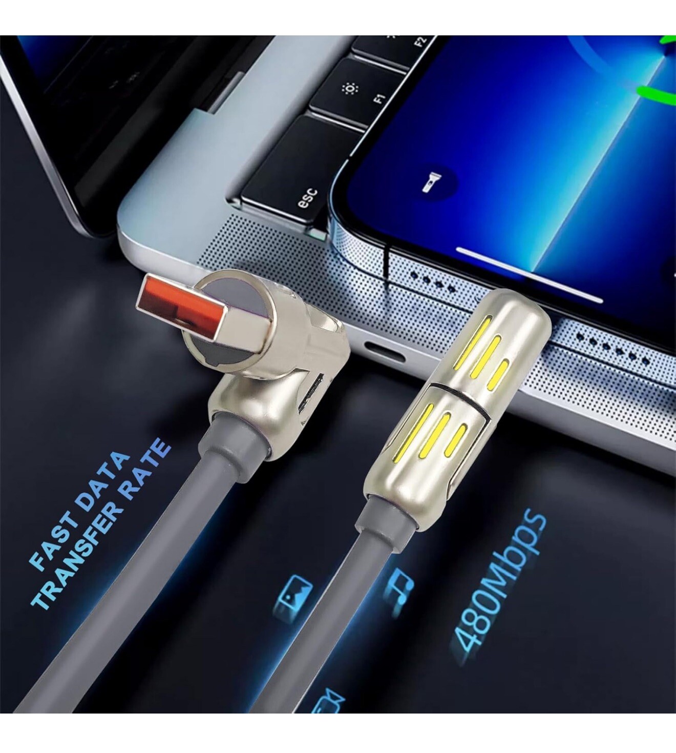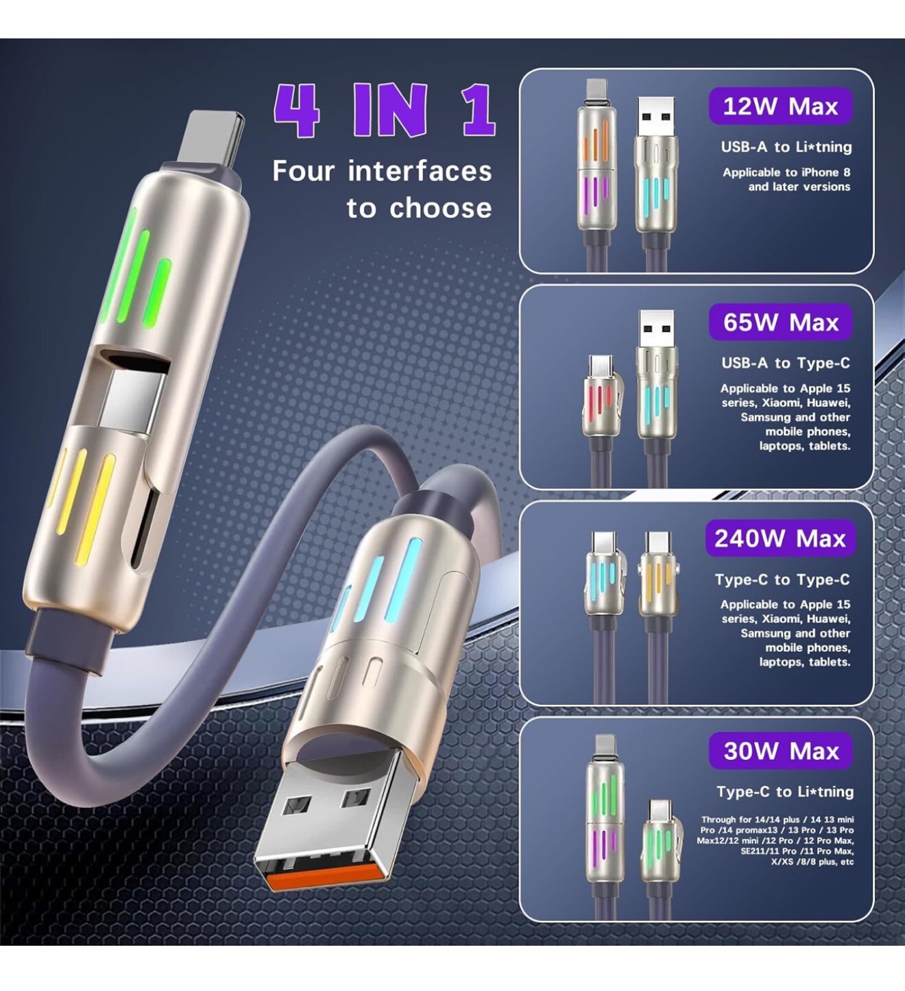 USB C Cable, 240W 4 in 1 Multi Charging Cable USB Charger Cable with Breathing L. Condition is New. Shipped with USPS Ground Advantage.