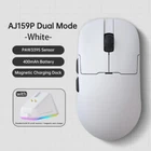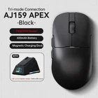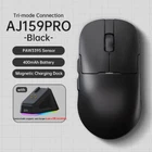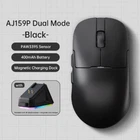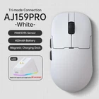 Model:AJ159 Color:White As Snow Peaks Dual Mode:2.4g Wireless+Wired Weight:About 56g Size:118.1*63.1*37.7mm (suitable for small and medium-sized hands) Sensor:PAW3395 DPI:26k Response Rate:Wired 1k+VVireless 1k Receiver:Standard 1k Small Receiver Battery:400mAh Coating: Injection molding Model:AJ159P Color:Black As A Meteorite and White As Snow Peaks Dual Mode:Wireless+Wired Weight:About 56g Size:118.1*63.1*37.7mm (suitable for small and medium-sized hands) Sensor:PAW3395 DPI:26k Response Rate:Wired 1k+Wireless 1k Receiver:Standard 1k small receiver+magnetic seat charging Battery:400mAh Coating: Injection molding Model:AJ159 PRO Color:Black As A Meteorite and White As Snow Peaks Three -Mode:Wireless+Wired+Bluetooth Weight:About 56g Size:118.1*63.1*37.7mm (suitable for small and medium-sized hands) Sensor:PAW3395 DPI:26k Response Rate:Wired 1k+Wireless 8k Receiver:Standard magnetic suction seat charging(built -in 8k receiver) Battery:400mAh Coating: Injection molding Model:AJ159 APEX Color:Black as ameteorite,Whiteas snow peaks,Orange as asunset, Blueas the sky Three -Mode:Wireless+Wired+Bluetooth Weight:About 56g Size:118.1*63.1*37.7mm (suitable for small and medium-sized hands) Sensor:PAW3950,APEX-Ajazz Customization DPI:30K,Overclocking Can Reach 42K Response Rate:Wired 1K+Wireless 8K Receiver:Standard the color screen magnetic suction built -in 8k receiver+support Gif moving map, time display, and tuning display. Battery:400mAh The AJ159 mouse and AJ159P mouse support both wired and 2.4G wireless modes, while the AJ159pro mouse supports wired/2.4G wireless/Bluetooth modes, with a return rate of up to 8,000hz, delivering exceptional responsiveness and stability. The AJ159PRO mouse comes with an RGB magnetic charging base, a built-in 8K receiver.(AJ159 mouse without base) Using lightweight design, the weight is reduced by about 56g, lightweight without light drifting keeps playing with a long wrist without burden, and the handling of guns is strong. PAW3395 high-performance sensor, more precise and faster, making it the best for gaming. The AJ159P mouse and AJ159PRO mouse come with a charging dock that allows you to charge anywhere, anytime, easily and conveniently. AJ159 APEX Small and Medium Hands | PAW3950 Tri-Mode Magentic Charging Base RGB Full Color Interactive 8000 Hz Return Rate Theoretical Latency As Low As 0.125ms PAW3950 APEX Customized Flagship Sensor More Precision And Fast 100,000,000 Times Green And White Dot Micro Movement Ice Coating Small and Medium Hands 56g Lightweight 400mAh Battery Contnuous Battery Life Four colors available for you to choose from PAW3950 8K Hz Entering Tri-Mode The Era PAW3950/APEX Flagship Sensor Do Your Best For The Game Tracking Rate:750 IPS Slient Height (LOD):1.0MM Wireless Return Rate:8000mz Acceleration:50g Sensitivity (DPI):50-30000* Overloackerable to 42000 whole series of ice-feel coating Middle Small Hand 56g light weight magnetic charging base can be placed anywhere for instant charging Easy and Convenient, no more battery worries Innovative full-color interactive screen supports GIF animations Ultra-low latency light-speed response 0.25ms ultra-low latency* highly sensitive response Product real shot display All the details you want to see are here