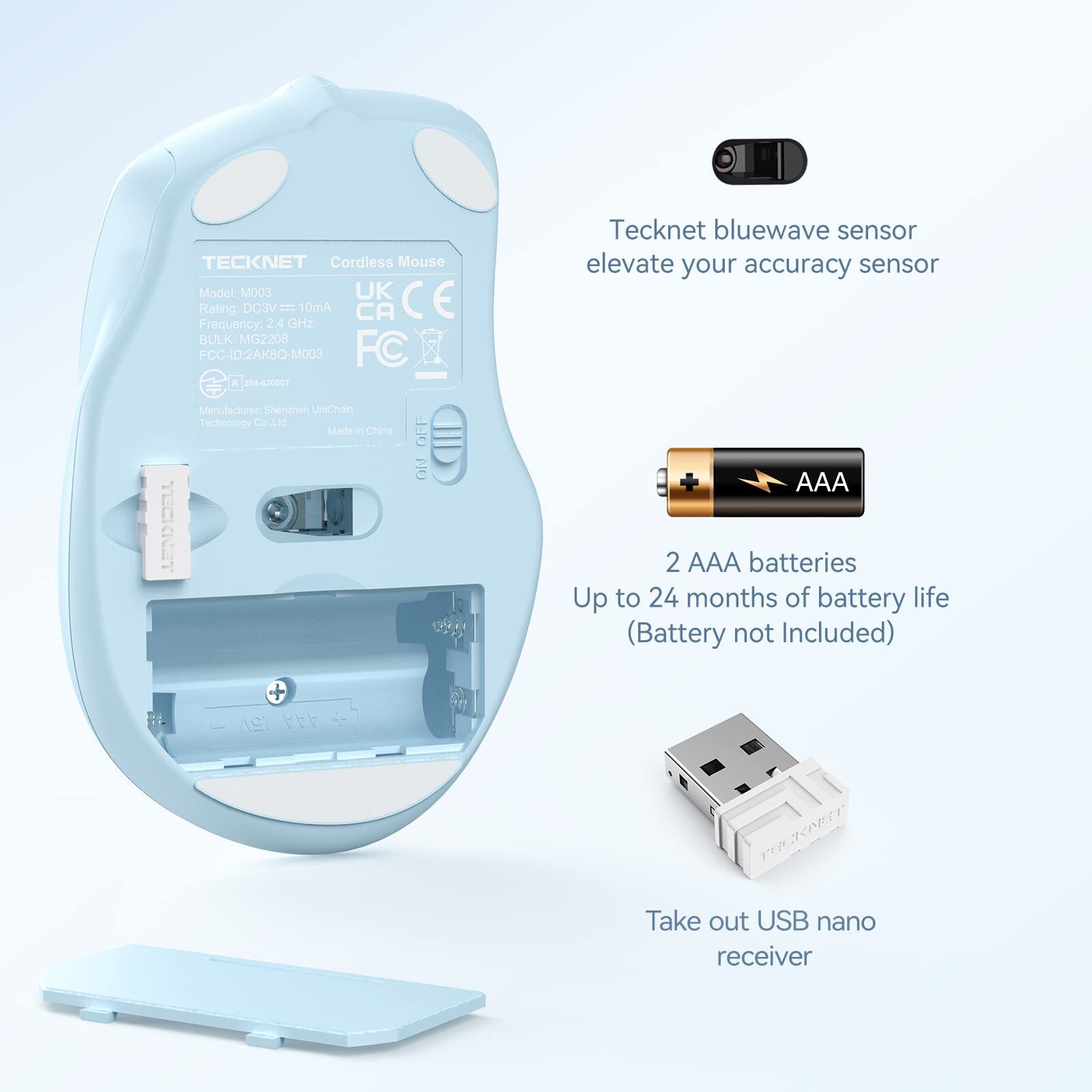Wireless Mouse, 2.4G Ergonomic Optical Mouse, Computer Mouse for Laptop, PC, Computer, Chromebook, Notebook, 6 Buttons, 24 Months Battery Life, 4000 DPI, 5 Adjustment Levels Wireless Mouse, 2.4G Ergonomic Optical Mouse, Computer Mouse for Laptop, PC, Computer, Chromebook, Notebook, 6 Buttons, 24 Months Battery Life, 4000 DPI, 5 Adjustment Levels Description Pro Wireless Mouse M003:Enjoy accurate control on a range of surfaces with this Pro wireless mouse, which features TruWave Precision,Co-Link For Anchored Pairing,Ultra-smooth cursor control and reliable battery power. TruWave Precision:Tru-Wave precision means you’ll enjoy smoother tracking on just about most surface. Co-Link For Anchored Pairing:Co-Link Technology will automatically pair the Mouse with the Nano receiver-there’s if the mouse-Nano connection is lost for any reason. Advanced 2.4 GHz Wifi Connectivity:You get the reliability of a cord with cordless convenience and freedom—fast data transmission and virtually no delays or dropouts from up to 15M away. 24 Month-Long Battery:A Smart sleep mode and an On/Off switch act to save power.* Battery life may vary based on user and PC conditions. Plug-and-play Simplicity:No software, no hassles—simply plug in the tiny nano receiver using your mouse right away. Nano Receiver: The tiny nano receiver works right away without software and is small enough to leave in your USB port so you won’t lose it Back/Forward Buttons:Moving quickly between documents or browsing your favorite Web sites is a breeze with large, easy-to-reach Back/Forward buttons. Storable Receiver:If you do need to remove the tiny receiver,just tuck it away right next to the battery. Comfy,Contoured Shape:The contoured design feels good in right hand and offers more comfort a touchpad. Specifications:- Lifelong Clicks: 6 Million- Battery : 2 AAA (NOT included) - Support: Windows 10,8,7,Vista,XP,2008 Box Contains:1 x Mouse1 x Wireless Receiver (Stored next to the battery compartment)1 x User documentationThe side buttons may not work for Mac OS due to the Compatibility.Other Buttons can function normally. Features Compact Design, Travel Friendly:With the dimension of 4.09*2.68*1.49 in, this compact mouse provides more portability and a travel experience. Ergonomic Design, Comfort Grip: The contoured shape of this mouse is ergonomically designed to fit the natural curve of your hand, ensuring lasting comfort and productivity. Featuring rubber side-grips, it offers added thumb support for a superior working experience. Advanced Optical Tracking: Featuring 6-level adjustable DPI (800/1200/1600/2400/3200/4000), this mouse provides high-performance precision and smart cursor control on most surfaces. 24 Months Battery Life - Combined with a power-saving mode and on/off switch, this efficiently engineered mouse grants you up to 24 months of battery life. Plug and Play: Simply plug the USB mini-receiver into your Windows, Mac, Chrome OS, or Linux computer and enjoy seamless connectivity up to 49 feet. Notice: Please be aware that the AAA batteries are not included. The USB receiver is stored at the back of the mouse. Return Policy ⦿ All our products come with a 30-Day Return Policy. If you would like to return your item and you are within 30 days of the purchase, and it is still in its original condition, you can return the item by contacting us through eBay messaging. ⦿ If you are not 100% satisfied, please let us know the Detailed Problem. We will give you a 100% satisfactory solution. ⦿ If you received an incorrect, damaged, defective, or item not as described, contact us for a partial/full refund or replacement on our cost. ⦿ Free Shipping and Free Return 30-Days Money Back Guarantee. ⦿ For all returned products, buyers MUST contact us for the returning address. Shipping Policy ⦿ We do not ship to a different address. We will ship to the address you provide on eBay only. Please check your address before purchase. ⦿ It should take 3-5 business days for the product to reach your destination. ⦿ If the product doesn't reach your destination within the time limit, please give it an additional 1-2 business days in case of postal delays and/or possible technical issues. ⦿ We use a selection of shipping services such as UPS, FedEx, USPS, etc. ⦿ We ship only to the 48 contiguous states of America. We do not ship to Hawaii, Alaska, US Protectorates, APO/FPO addresses. Local pickups are not offered. ⦿ If it takes any longer than that, please do not hesitate to contact us to resolve the issues. Contact us ⦿ Please contact us via eBay message. Your message will be replied within 1 business day. For any queries, please feel free to contact us, we will get back to you as quickly as possible. ⦿ Customer 100% satisfaction is our first priority and goal. We are always working hard to maintain high standards of excellence and resolve your problem in the best way. So your POSITIVE FEEDBACK is very important. ⦿ If you have any problem with the item, please feel free to let us know before leaving your feedback. We will try our best to solve your problem. About us We are here to give you quality products, competitive pricing, and amazing service to make sure you get the best deal online. Thank you for your business and the opportunity to serve you.