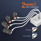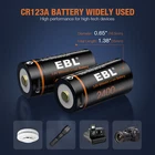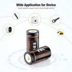 Features: HIGH PERFORMANCE - 3V 2400mWh lithium batteries( BATTERY SIZE: 16.5mm X 35mm), high density lithium cells makes our batteries lasting 20% longer than other CR123A batteries, compatible with flashlight, cameras and more. 2 HOURS QUICK CHARGE- you could charge 4 batteries at same time by provided cable ,saving the time.The build-in LED lights allow you to check the charging status easily. ADVANCED USB Charging Design - Easy to charge with the included 4 in 1 USB cable, no additional battery charger required, just plug into USB port for charging at anytime and anywhere. HIGH CAPACITY & LONG Lasting - 3V 2400mWh lithium batteries can provide steady 3V output voltage, makes the devices work more stable; No memory effect, EBL ProCyco (Professional recycle) technology helps maximize its best power performance while charging. FLASHLIGHT REPLACEMENT BATTERY- Pefect for non-rechargeable replacement batteries like 123, 123A, BR2/3A, CR123, CR123A, CR123R, CR17335, CR17345, DL123A, EL123AP, K123, K123A, K123LA, L123A, RCR123, SF123A, VL123A, VL123A, 5018LC. Specifications: Battery Type: 3V 16J Li-ion Rechargeable Battery Capacity: 800mAh (2400mWh ) Recycle time: up to 1200 times Charging Time: about 2 Hours Charging Current: 5V/1A Weight: 18.8g / pcs ( 0.67oz / pcs) Battery Size: 16.5mm x 35mm (± 0.2mm) Compatible Devices:Security Camera, Camera, Clock, Toy, Led lights, Torch Package Included: 24 x Batteries 12 x Charger Cable