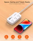 Extension Cord 25 Ft, Flat Plug Power Strip with 6 Outlets with 4 USB Ports(2 USB C), Wall Mount Charging Station, No Surge Protector for Home Office College Dorm Room Travel Essentials MORE BENEFITS 【 25 ft Extension Cord with Flat Plug 】This long extension cord with 25FT is long enough to make it more flexible, flat plug design indoor extension cord with USB can fit easily in tight spaces, such as a desk, or nightstand; 45 degrees right-angle create enough room makes this USB power strip flat plug does not obstruct other plugs, suitable for installing behind sofa, wardrobe, bookshelves, and other furniture. The braided power cord is not easy to deform, is durable, and more safer. 【10-in-1 Power Strip with USB Ports】Flat extension cord could turn 1 socket into 6 outlets 2 USB-A and 2 USB-C, which could charge up to 10 devices at the same time. Compatible with your cellphone, laptop, tablet, earphone, or cameras without a variety of converters, keeps your desktop organized, must-have accessory for the college dorm room, home, office, bedroom, kitchen etc. and this mountable power strip can be fixed on the wall or desk by 2 keyhole slots on the back. 【2 x USB C Power Strip】Added extra 2 USB C ports for your devices, the USB C port can charge up to 5V/3A. USB-A ports can charge up to 5V/2.4A Max, all USB Ports Output is 5V/3.1A, 15.5W max which is 30% faster than other power strip. With smart charging technology, it can auto-detect your devices and can reach faster charging efficiency, perfectly fit for your iPhone, iPad, etc. 【Cruise Accessories Must Haves 】The small cruise power strip with NO surge protection, it's absolutely a must-have Home and Cruise Ship accessory as Cruise lines require that power strips DO NOT have Surge Protection. Compact and lightweight, easy to carry, and best for travel. 【Multi Safety Protection】RoHS, ETL Certificates. This long power strip has overload protection, short-circuit protection, over-current protection, over-voltage protection, and overheating protection.