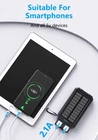 High Capacity Portable Solar Charger Power Bank: Built-in 25000mAh high capacity Lithium battery equipped with a high performance solar panel, anti-explosion, lightweight and reliable. Long lifespan with more than 2000 recharging times. which could recharge the battery itself under sunlight, eco-friendly and ideal for outdoor use.Made of durable and resistant ABS+PC Material which protect it from rain, dirt and shock. Double LED Flashlights: 2 led lights can be used as flashlight with Steady-SOS-Strobe mode, Just long-press(about 5 seconds) the side button the flashlights will light up. Five pilot indicators show the status of the battery charger timely. The green light on when charging by a solar, blue light on when USB charging. Two Different Method Recharging: Portable charger power bank can be charged by Micro input port(5V/1.6A) with the provided cable. In addition, it can be charged by solar panels and is suitable for outdoor activities such as camping, hiking and even emergencies. It is a perfect portable charger for travel, airplanes, or any place where you need to charge your mobile phone. Highly Compatibility: Built-in double 5V/2.1A USB output allows you to charge two devices simultaneously, compatible with all cellphones and other electronic equipment. Built-in security devices protect your devices from excessive power, overheating, and overcharging. What You Get: 25000mAh Solar Charger(with compass), Micro USB cable, Carabiner, User Manual.