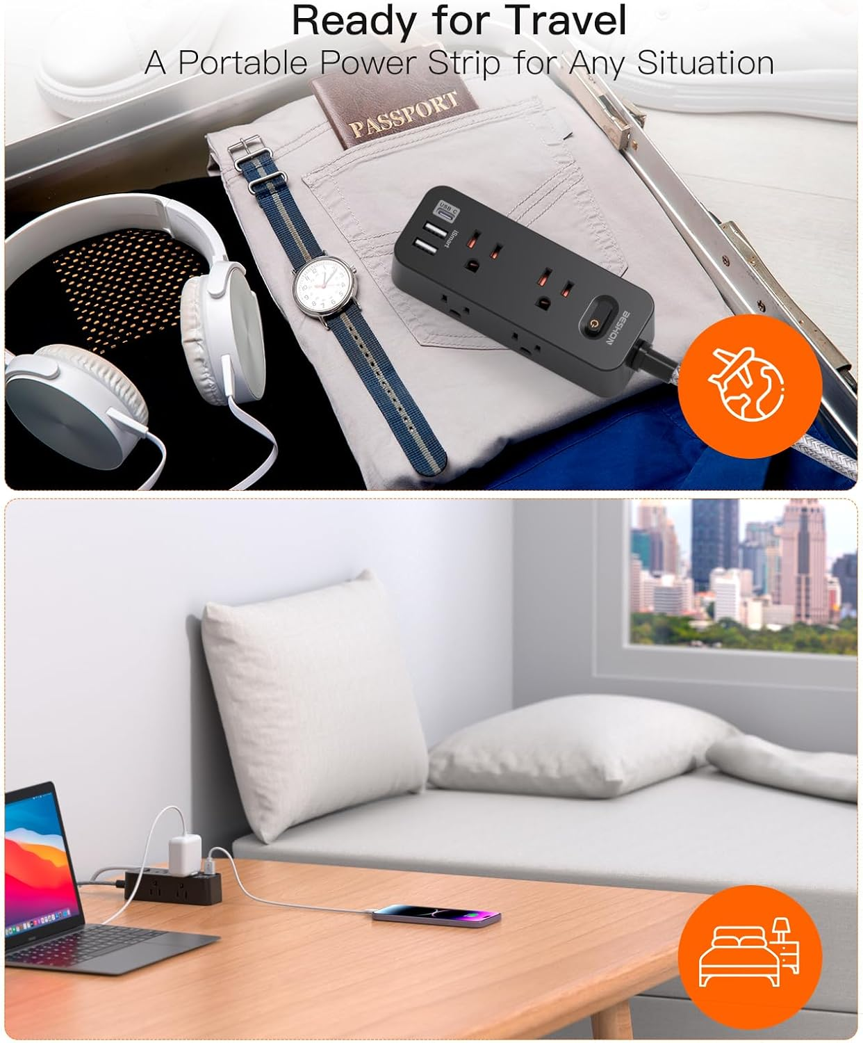 Extension Cord 25FT, Power Strip Surge Protector, 6 Outlets with 3 USB Ports(1 USB C Outlet), 3-Side Outlet Extender, Wall Mount, Compact for Travel, Home, School, College Dorm Room, and Office, Black 【Extension Cord 25FT】The 25ft long extension cord is very thick and has a better current carrying capacity. A flat plug fits easily in tight spaces. The 45-degree angled design doesn’t block the bottom receptacle of your duplex wall outlet. 【9 IN 1 Power Strip with USB-C】3-side power strip with 6 AC outlets and 3 USB ports can power up 9 devices simultaneously. Compatible with almost all USB devices(the demand decides the actual current for the devices). 【3 Side Design & Wide Space Outlets】3-side design that makes it enough to fit big adapters and suitable for all kinds of equipment. and each AC outlet with 1.6 inches of space in between, is larger than a standard 1.5-inch socket. fit big adapters without blocking each other. The compact design saves more space, suitable for the travel, home, dorm room, and office. 【 USB-C FAST Charge】3 USB ports total 5V/3.1A TOTAL, Each USB-A port provides 5V/2.4A max, and the USB-C port can up to 5V/3A max. With smart charging technology, it can auto-detect your connected devices and can reach faster-charging efficiency, which would charge your cellphone, or pad WITHOUT a variety of converters. 【Surge Protection & Overload Protection】900 Joules surge protector with overload protection protects your electrical appliances from lighting, surges, or spikes. 5ft extension cord is made of pure copper, which has better current carrying capacity (15A). Product Description 9 IN 1 Power Strip with USB-C BESHON USB Smart Power Strip with 6 wide outlets & 3 smart USB charging ports allows you to make reasonable use of the socket. It makes up little space on your desk or floor and makes your desktop organized, and suitable for home and office. Wall Mountable Power Strip Wall mount design and right angle flat plug with 25Ft extension cord can allow you to install this power strip in various places, it's a great desk or wall usb charging station for phones, tablets, PC, TV, and more. Overload Protection Features 900-Joule surge protection, overload protection, and much more to keep you and your devices safe. Unique Multi Sides Design AC outlet with 1.6 inches of space in between, is larger than a standard 1.5-inch socket. fit big adapters without blocking each other. The compact design saves more space, suitable for the travel, home, dorm room, and office Upgraded Extension Cord The power cord is very thick and has better current carrying capacity, and the braided extension cord is not easy to deform, durable and more safety than other power cord. Surge protector Surge protector can protect your devices from lighting, surges or spikes. Overload protection switch will trip off automatically to protect your devices and your home when power overload. 9 IN 1 Power Strip with USB-C 3-side power strip with 6 AC outlets and 3 USB ports can power up 9 devices simultaneously. Compatible with almost all USB devices(the actual current is decided by the demand for the devices) Color Black Country of Origin China Item Weight 1.68 pounds Total Power Outlets 6 Voltage 125 Special Feature Surge Protection, Usb Slot Package Dimensions 10.55 x 4.76 x 2.44 inches Size 25FT-Right Angle Plug Shipping We offer FREE shipping on all orders! Under normal circumstances, we try to ship all orders within three business days of payment, normally sooner. We use a selection of shipping services such as UPS, FedEx, USPS, etc We only ship to the lower 48 states, we do not ship to Alaska/Hawaii, US Protectorates, Puerto Rico, and PO Boxes. Local pickups and combined shipping options are not available at this time. Returns and payment We offer a 30-Day Return Policy on items in which you are not completely satisfied with. You have the option of a full-refund or an exchange of the item. No returns are available on items shipped outside of the USA FeedBack Your feedback very important to us, after you get your package and you are satisfied with our service please leave us positive feedback If you have any problem with your order / any questions please before leave any type of feedback For any questions, using eBay contact system Please visit our eBay store to check out other items for sale! Thank you for shopping at our store.