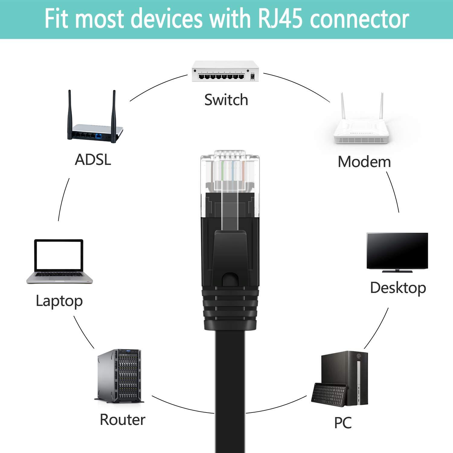 Cat6 Ethernet Cable 25 ft, Flat Internet Cable Network LAN Patch Cord, Slim Interent Wire with Clips, High Speed Rj45 Ethernet Cord for Router,Modem,Computer,Faster Than Cat5e Cat5,Black About the Product Key Features Universal Networking Compatibity: High performance Cat6 ethernet cable, 50 feet, provides universal connectivity for LAN network components, supports all devices with RJ45 Jacks, fit for PCs, computer cable servers, switch boxes, ADSL, printers, routers, network media players, hubs, television set with network interface, Modems, laptop, tv, USB LAN cable adapter, PS4, Xbox One, Xbox 360, Gaming, NAS, keystone jack, networking equipment, inline coupler Faster Speed & No Interference: 4 UTP(Unshielded Twisted Pair) patch LAN cable th RJ45 connectors are made of copper wires, provides performance of up to 250 MHz, protects 50 feet ethernet cable from crosstalk, noise and interference;With 8 pure copper pins on each end, cat6 long ethernet cable for PS4 is suitable for 10Base-T, 100BASE-TX(Fast Ethernet), 1000Base-T/1000base-tx(gigabit ethernet)and 10gbase-t(10-gigabit Ethernet) Flat Design & 20 Free Clips: Cat6 50 feet internet wire with Ultra-thin technology avoids tangled cords and saves space;With 20 FREE cable clips, you can easily and seamlessly make the cable run along walls, edges or corners;Super flexible when run under the carpet or bent in the plane of its thin cross-section such as doors, drawers, rotating arms etc, cleaner and safer Durability & Stability: PVC jacket protects inner cooper core;No need to worry about the mess issue of 50ft cat 6 ethernet cable when surfing the net, watching TV, stream video, listening to the music and transmissing data at greater speed of 50 feet lan cable fit for PS4;Cat6 flat ethernet cable is suitable for Fast Ethernet, Gigabit Ethernet, and 10-Gigabit Ethernet Enhanced Safety:This flat network cable is LSZH-tested, ensuring low smoke and low toxicity for enhanced fire safety;It also offers corrosion resistance and long-term performance, making it a reliable choice Delivery Information Our shipping is prompt and secure. Orders are dispatched within 1-2 business days. It should take 3-5 business days for the product to reach your destination (Saturday and Sunday excluded). We do not ship to a different address. we will ship to the address you provide on the ebay only. Please check your address before purchase. Return Policy Returns are accepted within 30 days if you are not completely satisfied. Refunds are issued back to your original payment method. Items must be returned in their original condition and packaging. Payment Options We accept PayPal, credit cards, and other payment methods supported by eBay. Please ensure your payment details are up-to-date to avoid any delays. Your Feedback Matters We appreciate your feedback. If you're happy with your purchase, please consider leaving a positive review. Contact Information If you have any queries or require further assistance, please contact us via eBay messages.