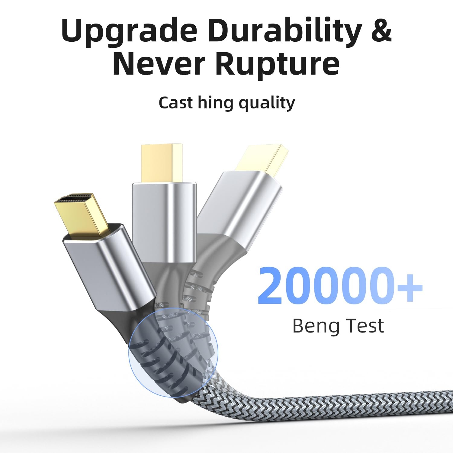 The latest version of 4K HDMI cable Woven rope material, more fashionable and durable The bandwidth of the HDMI 2.0 cable has been expanded to 18Gbps, which is enough to support UHD 4K (3840×2160 resolution), a maximum refresh rate of 60HZ and a frame rate of 50FPS/60FPS Support 3D vision, high dynamic range imaging (HDR) Perfectly support the size of 21:9 aspect ratio giant screen TV Our 4K ultra high speed HDMI cable adopts the most advanced technology, clearly displaying each pixel and accurately processing each signal source. It is also compatible with 4K@60HZ and 2K@120HZ. The latest HDMI core complies with the standard HDMI version 2.0, with direct transmission from 18Gbps and supports ARC,enabling more advanced audio signal control functions. It is also backward compatible with HDMI versions 2.0b/2.0a/1.4/1.3/1.2/1.1. This HDMI cable adopts the latest design style, with upgraded aluminum alloy casing strength and anti bending design at the tail, making it more durable. The plug part is still made of 24K gold-plated material, which can accurately transmit signals. The protection of Nylon rope material can play a waterproof, moldy, and high-temperature effect, greatly improving the service life. The 4K HDMI cable supports the latest high bitrate audio formats, providing an immersive multi-dimensional experience and enhancing audio details and depth, with dynamic HDR 10,variable refresh rate (VRR),fast frame transfer (QFT) and fast media switching (QMS), ARC, HDCP 2.0, HDCP 1.4. Our 4k HDMI cables are compatible with all HDMI devices. Blu ray player Roku TV, Fire TV, PS5, PS4, PS3, XBox, Nintendo Switch, computer, laptop, monitor, projector, etc. It is an essential HDMI cable for your home entertainment, friend gatherings, and office equipment. Our factory has a comprehensive quality inspection process to ensure that every 4k HDMI cable undergoes all performance tests and integrity checks before packaging, and is equipped with a professional customer service team to solve any problems for all buyers before and after purchase.