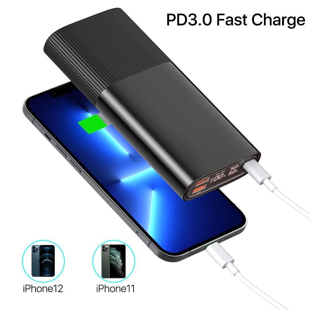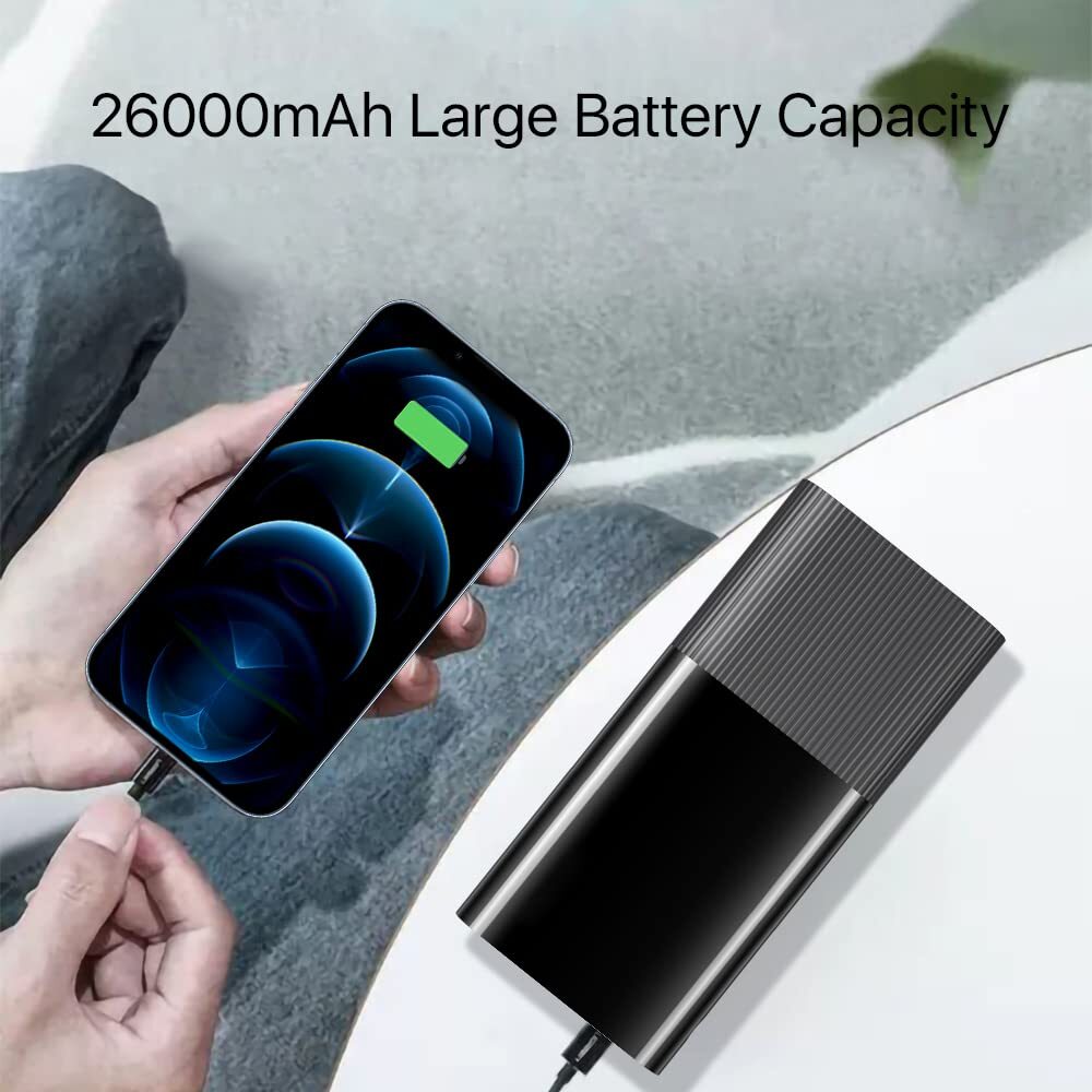 Massive 26000mAh Capacity: This power bank can charge for iphone 13 /12/11 about 6 times, Samsung Galaxy S20 about 5 times, and provide more times for small capacity devices. Perfect partner for party, dating, travel and airplane trip. Unrivaled Fast Charging: With 2 USB output ports, 1 type-c input/output port, 1 micro input port, all the input/output ports are PD18W, which will help you save more time. (3A type-c fast charging cable included) Simultaneous Charging: With 2 USB output ports and 1 type-c output port, this portable charger can charge 3 devices at once. you can share it with your family and friends. NOTE: When charge multiple devices at once, fast charge will turn off for safety. Compatible with your smartphones, bluetooth headsets, cameras, handheld game consoles and other USB electronic devices. Thoughtful Design: With excellent LED indicator, it show the Real-time voltage, current and remaining power. You can clearly get the exact charging speed and remaining power in real time. Easy to hold, convenient to toss into bag and incredibly portable. Built-in Multi Protection: overcharge protection, short circuit protection, temperature control and more, ensure 100% safety. You will get: power bank*1, 3A USB C cable*1, user manual*1 and our satisfying service.
