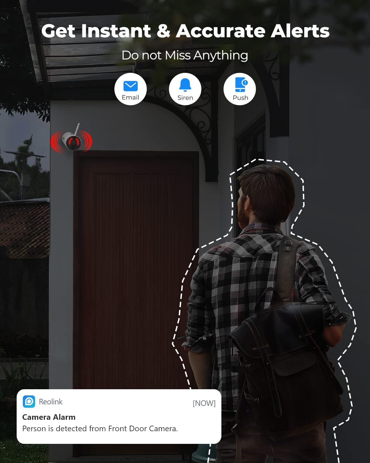 100% WIRE-FREE EASY INSTALLATION: Connect the cam to the solar panel for non-stop power with no cabling hassles. This IP65 waterproof camera can withstand harsh weather, so you can install it wherever covered by the 2.4GHz WiFi. 2K 3MP SUPER HD DAY & NIGHT: 3MP resolution delivers much clearer videos than 1080p. 6 infrared LEDs empower a 10m clear night vision. 10X digital zoom lets you closely see more details and have everything in control. SMART DETECTION: Intelligently distinguishes people, vehicles, and pets from other objects with advanced technology, greatly reducing false alarms. Multiple real-time alerts (push, email, siren) won't let you miss important events. FLEXIBLE STORAGE & PLAYBACK: Save event videos on the microSD card (not included). No extra fees,no hub needed.You can easily find videos using smart filters on the App/Client, you can use on-camera smart features without subscription. SMART HOME & 2-WAY TALK: Works with Amazon Alexa & Google Assistant, bringing more convenience. 2-way talk makes responding to couriers or uninvited guests in real-time possible. You can even set the detection sensitivity, schedule, and area zones to avoid false alarms.