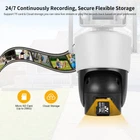 đŸŽ„ă€2.4G WiFi Camera & 24/7 Recording】 This security camera is connected with 2.4GHz WiFi network, not support 5GHz, you can enjoy uninterrupted video streaming and remote in your smart phone anywhere. 24/7 recording wireless camera will protect your home safety day and night. đŸŽ„ă€Dual HD Lens & 360° View Coverage】 This wireless security camera system features dual HD lens, it will capture two areas simultaneously to record more details in full view. The PTZ camera can be rotated to pan 350° and tilt 90°, capturing important moments from every corner. đŸŽ„ă€AI Humanoid Detection & Auto Tracking】 Equipped with advanced PIR sensor, the outdoor WiFi camera can smartly identify the human figure. Meanwhile, it will automatically track the human figure until it disappears from the camera's view. đŸŽ„ă€Two-way Talk & Customized Ringtone】 Built in high sensitive microphone and speaker, you can freely communicate with your families or visitors through this dual lens security camera. You can set personalized alarm ringtones on the App, when the WiFi security camera detects the suspicious person, it prompts the customized voice. đŸŽ„ă€Secure and Flexible Storage Options】 IP66 waterproof, it is easy to withstand the extreme weather. The wireless camera outdoors supports save the recording videos in the TF card (up to 256G, not included), cloud storage or hard disk recorder.