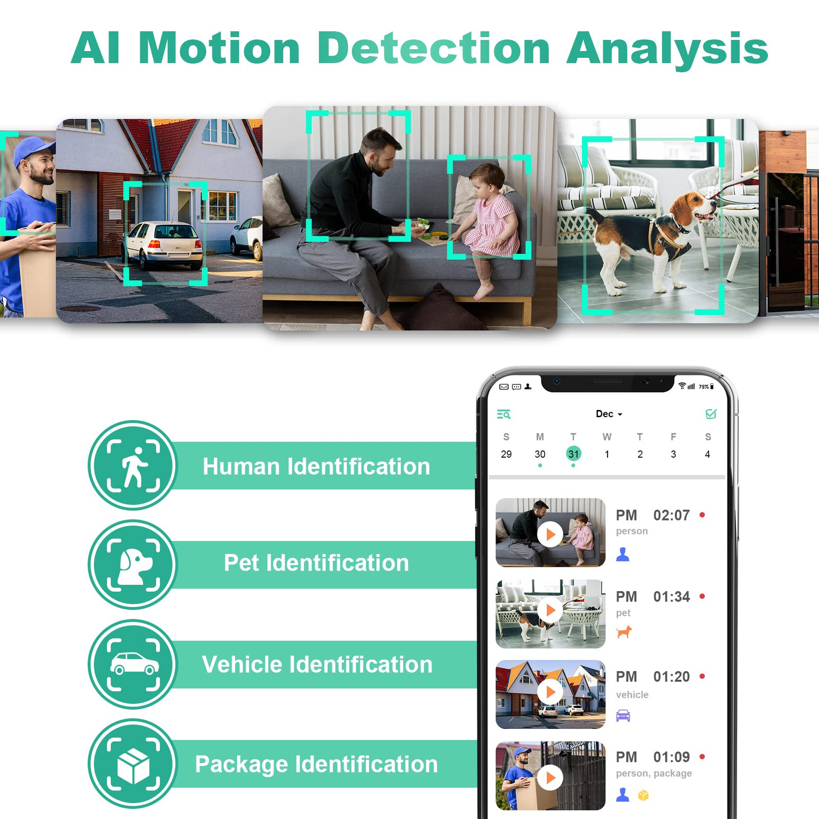 【Rechargeable & Waterproof & Wire-Free】This wireless rechargeable outdoor/indoor camera can provide 1 to 5 months of worry free use for once charge. The security cameras wireless outdoor with IP65 waterproof can work in any weather. Since the WIFI cam is completely wireless, no power cords or network cable is needed, allowing install virtually anywhere with the provided, bracket and screw. 【PIR Motion Detection with AI Analysis Recognition】This outdoor camera wireless with advanced smart AI motions detection, it can clear analysis and recognition person, vehicle, pet and package. The AI PIR sensor will be triggered in real time once the outdoor security cameras detect motion, at the same time, the notification will be pushed to your phone via the app. And this security camera can be shared with multiple users. 【1080P HD Live Video, Picture & Color Night Vision】The security cameras wireless outdoor provide a degree wide angle, 1080P quality video and image. Regarding night vision, it has two modes, full color night vision and infrared night vision with a 33ft visible range. Whether it is night or day, it will provide a clear wide video of any area you wish to monitor. With the included app, the system’s live or recorded video can be accessed anywhere at any time. 【Two-Way Talk & Smart Instant Siren】This outside camera has a built-in microphone and speaker that supports real-time, two-way, audio calls. With the mobile App you can warn off thieves, screen visitors at your door or communicate directly with your family or friends. Siren, flashing white light or 2-way talk that both allow you drive away thieves and unwanted visitors. 【Cloud/SD & Free 3-Day Cycle Cloud Storage】The home security camera supports SD card and cloud storage. It provides free rolling 3-day cycled cloud storage that you can enjoy storage service without any subscription. And it provides a 30-day free trial of advanced features that include AI recognition, upgraded cloud memory, custom alert areas and etc, the advanced features starts at $2.99 per month after 30 days free trial.