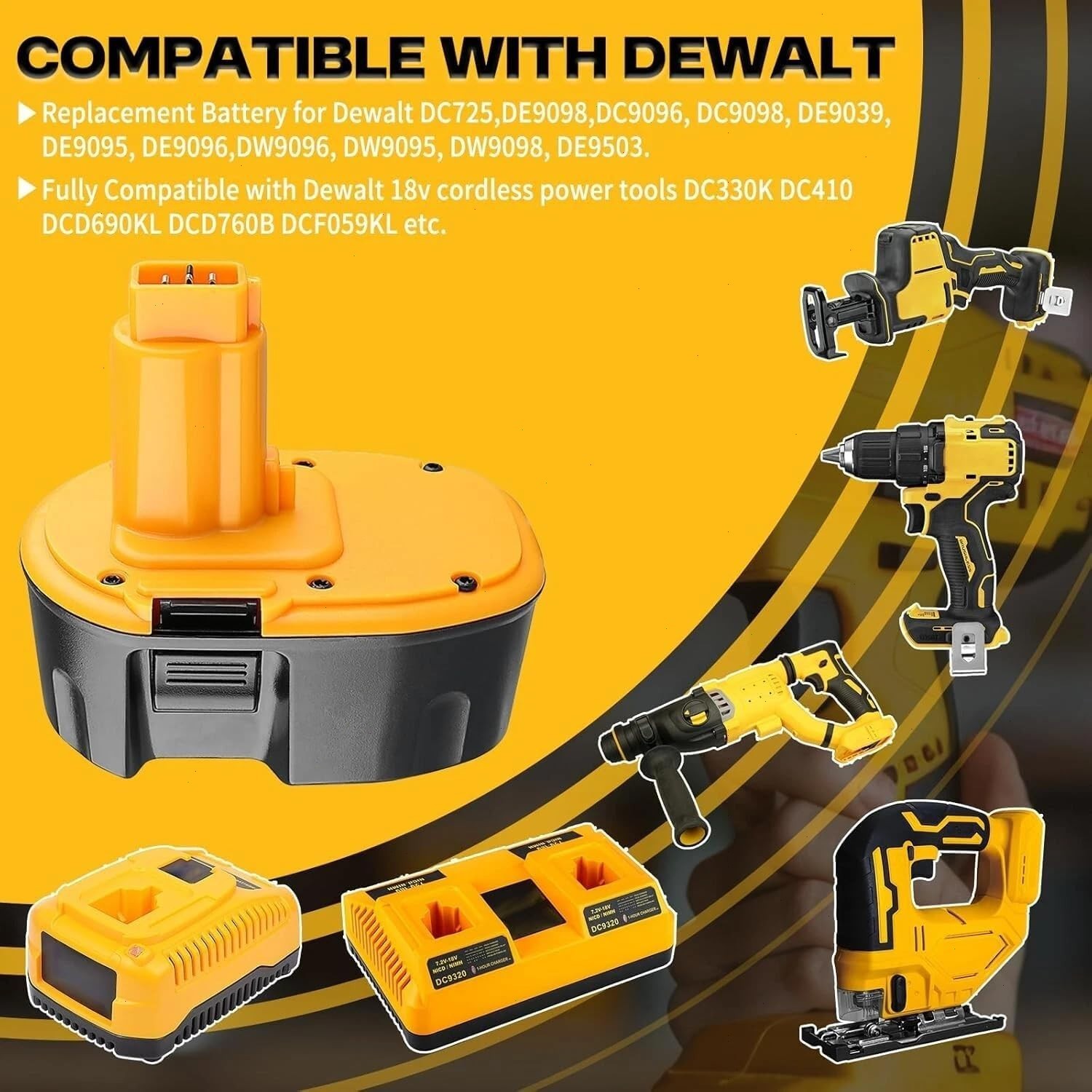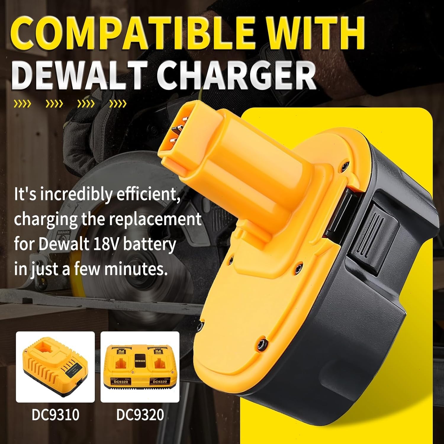 Product Description Quick Release Button With an easy-to-use release button, a light press allows the battery to be easily removed, ensuring smooth and convenient battery changes Precise Interface The precise interface perfectly matches Dewalt cordless power tools, just like the original Dewalt battery Hard Shell The thickened and hard shell can protect the battery well, and it will not affect normal use even if it falls from the air accidentally Basic Battery Information Capacity 5000mAh Voltage 18 Volt Wattage 90Wh Compatible with Model DC9096 DC9098 DC9099 DW9095 DW9096 DW9098 DE9038 DC759 DC970 DW9578 DE9039 DE9095 DE9096 DE9098 DW9095 Cordless Power Tools ect(Compatible with Original Dewalt 18 Volt Battery Charger) Packing Size 5.90 x 7.48 x 4.92 inches Packing List 5000mAh DC9096 Battery × 2, user manual × 1 Top About this item Product information Questions Reviews