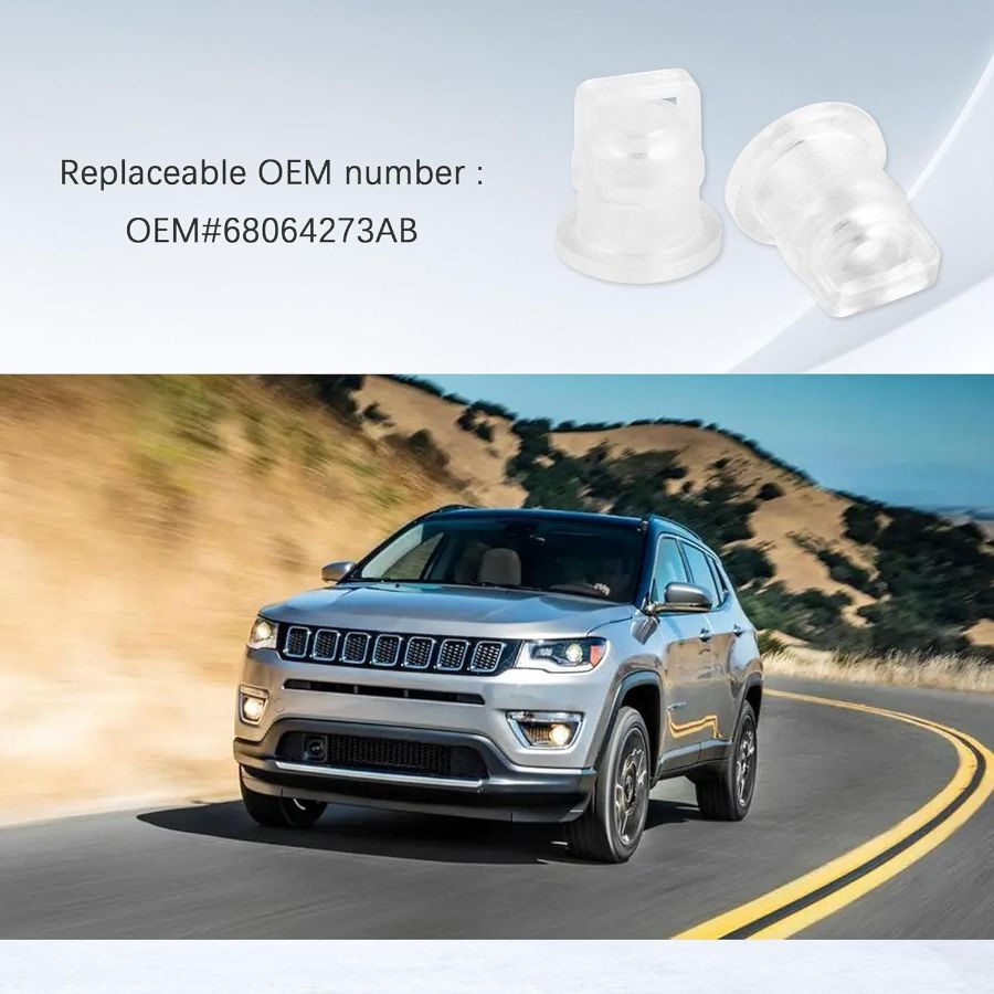 Engineered to match OEM standards, our cable bushing features a replacement number of 68064273AB. Please check the replacement number and applicable models carefully before purchasing to avoid unavailability after receiving the product. Designed for seamless integration, our cable bushing is compatible with Jeep Wrangler JK models from 2007 to 2018, Jeep Compass models from 2007 to 2018, and Jeep Patriot models from 2007 to 2017. Our linkage bushing comes in a dual-pack, providing you with two bushings. This not only allows for immediate replacement but also ensures you have a spare for future maintenance needs. The primary role of our linkage bushing is to shield your shift cable from wear and tear, preventing moisture, dirt, and debris from entering the cable housing. By maintaining a clean system, our bushing helps avoid short circuits. Crafted from a soft rubber compound, our linkage bushing offers flexibility and durability. The rubber is resistant to oil, heat, and wear. Its elastic nature allows for a snug fit around the cable. Size: 0.64 x 0.59 x 0.59 inches.