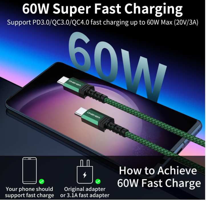 Free eBay listing template designed by dewiso.com USB C to USB C Cable, (2 Pack 3.3ft),USB-C 60W Type C Fast Charging Cord Charger Compatible with iPhone 15 15 Pro/15 Pro Max MacBook Pro/Air iPad Pro Mini 6 Samsung Galaxy S23 S22 S21 S20 Ultra USB C to USB C Cable, (2 Pack 3.3ft),USB-C 60W Type C Fast Charging Cord Charger Compatible with iPhone 15 15 Pro/15 Pro Max MacBook Pro/Air iPad Pro Mini 6 Samsung Galaxy S23 S22 S21 S20 Ultra Product Description USB-C to USB-C Cable: Max Output: 20V 3A 60W Date transfe r: USB 2.0, 40-60MB/S (480Mbps) Important Notes: This is a USB-C to USB-C cable NOT USB-C to USB-A cable, so you need a USB C wall charger to charge your device. For ensure the charging speed of your device, please use the original USB C wall charger, or high quality charger which can support QC 2.0/3.0 and USB PD fast charging. It is a charging and data cable NOT Thunderbolt 3 cable so it CAN NOT output video. These cables are designed according to the USB 2.0 specification. The actual transmission speed is within 480Mbps(40-60MB/S) , so it cannot reach the speed of usb 3.0 (5 Gbps) or 3.1 (10 Gbps) Not compatible with Moto Z/Z Foce and One Plus 3. Fully Compatible Devices iPhone 15 15 Pro/15 Pro Max Samsung Galaxy S23 S22 S21 / S21+ / S21 Ultra / S20 / S20+ / S20 Ultra / Note 20 / Note 20 Ultra / Note 10 / Note 10 Plus / A80 MacBook 2015 / 2016 / 2017 Macbook Air 2018 / 2019 / 2020 MacBook Pro 13'' 2017 / 2018 / 2019 / 2020 iPad Pro 2018 / 2019 / 2020