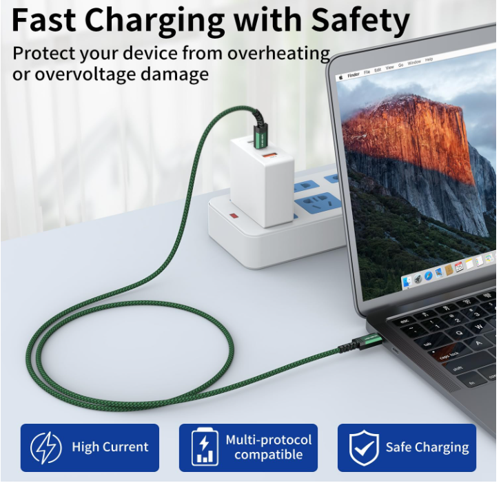These cables are a game-changer! Fast charging works flawlessly with my iPhone 15 and MacBook, delivering quick power without overheating. The braided design feels durable, and the 3.3ft length is perfect for bedside or travel. Data transfer is speedy tooâno lag when moving files. Having two in the pack is super convenient. Highly recommend for anyone needing reliable USB-C cables!