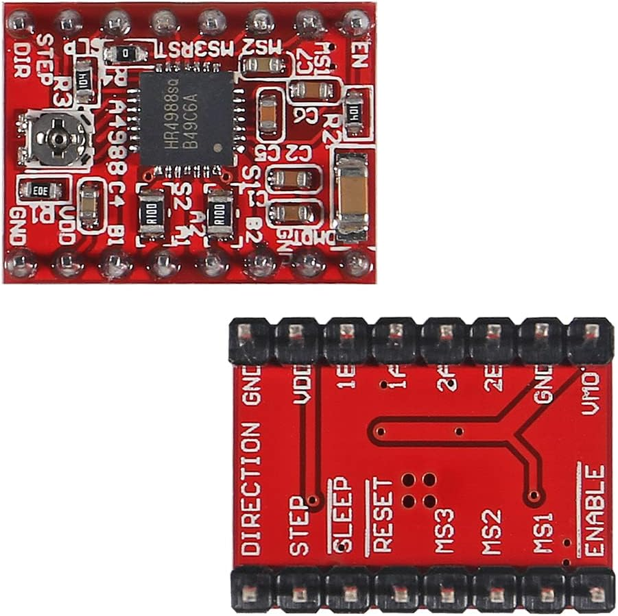 Simple step and direction control interface,Take anti-static measures before you use the A4988 modules in case of short-circuit Easy to operate: this is a complete micro-stepping motor driver with a built-in converter, easy to operate; When micro-stepping is running, the chopper control compatible with A4988 can automatically select the current decay mode, slow or mixed Wide application: the stepper motor drive module is compatible with stepper motor/ 3D printer/ CNC/ engraving machine/ supported 3D printer and more; Please confirm whether the product model is suitable before buying Five different step resolutions: full-step, half-step, quarter-step, eighth-step, and sixteenth-step. Output drive capacity of up to 35 V and ± 1.2 A Over-temperature thermal shutdown, under-voltage lockout, and crossover-current protection Parameters: Size: 1.5mmX2mm (for RAMPS, or other compatible boards); The drive current: 2A (best to install the heat sink) Segments: 1,1 / 2,1 / 4,1 / 8,1 / 16 Manufacturing process: higher SMT placement machine manufacturing, non-manual welding, yield, more stable performance. Applications: Stepper motors /3D printer/CNC/engraving machines/You can refer to the for Arduino code at the back of the module. Package included: 2 * A4988 Stepstick Stepper Motor Driver Module (with PINs) 2 * Heatsink