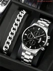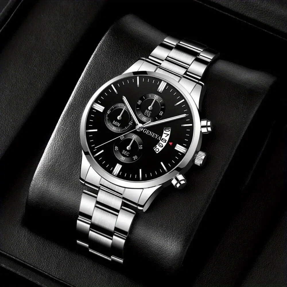 This watch and bracelet set is a sleek, stylish choice for any professional. The black quartz face gives it a modern, high-end look, while the matching bracelet adds extra sophistication. Perfect for business or casual wear, it keeps time accurately and feels durable. The round calendar dial is a nice functional touch. Great value for such a polished set!