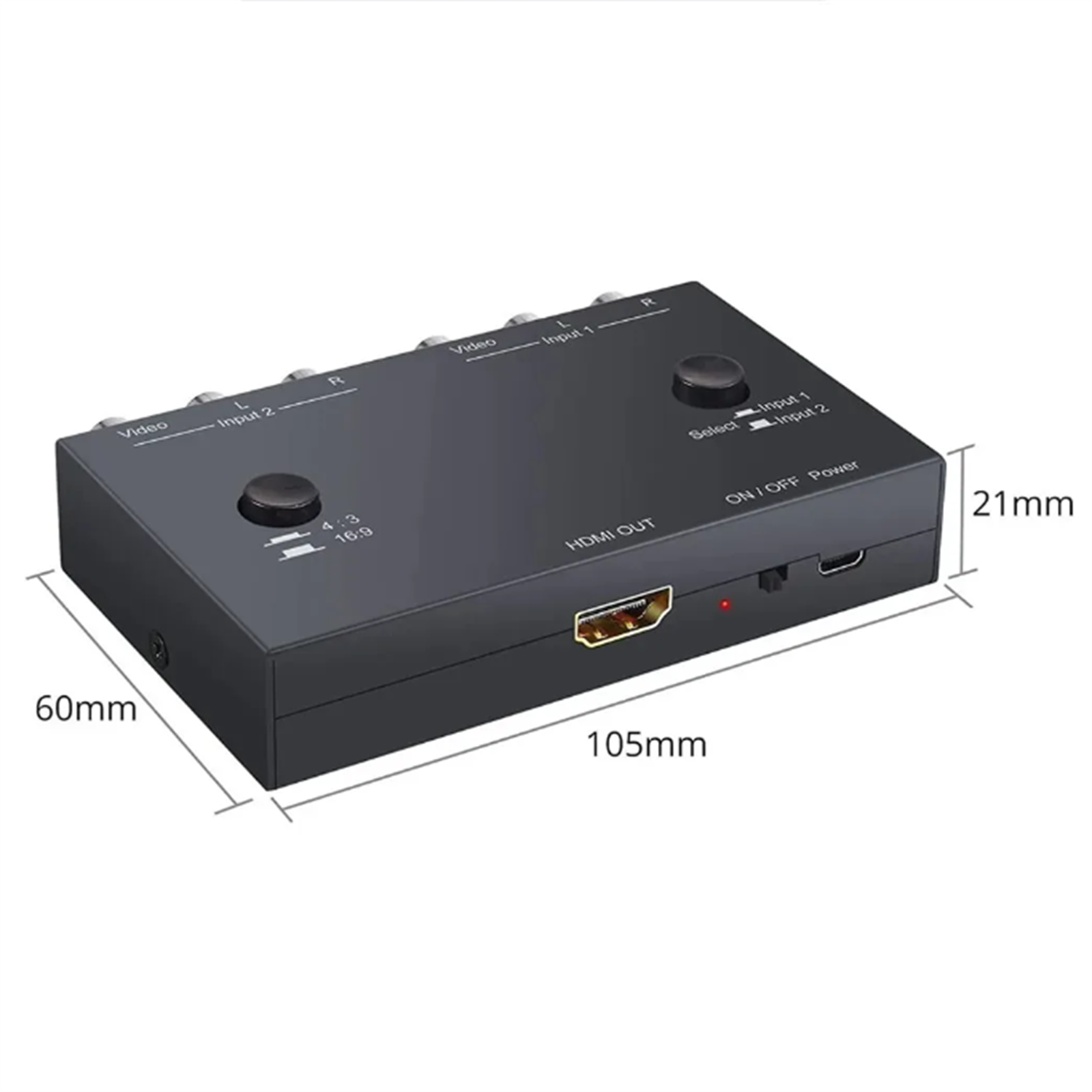 2RCA to HDMI Converter Dual Port AV Adapter with Switcher