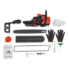 2-Stroke Gas Chainsaw 2.2Kw Handheld Petrol Chain Saw 58cc Gasoline Chainsaw Description This gasoline chainsaw is powered by a high-quality 2-stroke engine with 58cc displacement, featuring high efficiency, high power, reliable operation and long service life, which is ideal for cutting wood with less effort. The lightweight design makes it easier to operate, ergonomic handle ensures a comfortable user experience. With it, your work becomes easier and easier. Key Features High-quality Materials: This gasoline chain saw is made of high-quality plastic, nylon, and 65 Mn steel, which is sturdy and durable, wear-resistant, not easy to deform, and has a long service life. High Efficiency: This product has a 2-stroke air-cooled engine, 58cc displacement, 2800-11000rpm high speed, 2.2Kw high power, and 24.8-inch hardened chain and 18-inch one-piece molded guide, which can achieve chain speeds of 12.5 ft/ s, allowing you to cut through trees quickly and more easily. Cost-saving: This product adopts a diaphragm carburetor and automatic filtration systems, which not only prevent dust and debris from entering the engine, thus reducing fuel consumption, but also burn the gasoline fully and improve the fuel utilization rate. In addition, the advanced automatic lubrication system minimizes friction between the guide bar and the chain, prolonging the life of the chain and ensuring a seamless cutting experience. High Safety: It has a dual protection switch that needs to be pressed at the same time to activate, which prevents the machine from starting accidentally for added safety in use. Moreover, the thicker and wider baffle allows for emergency braking and prevents wood chips from splashing, or accidentally touching the chain, increasing safety in use. Portable and Ergonomic: The ergonomic front handle and starter handle, and anti-vibration system provide you with maximum comfort, allowing you to start the product quickly and ensuring comfortable control during long periods of use. Good Heat Dissipation: Dense cooling holes and three-hole exhaust vent ensure good heat dissipation, which effectively prevents the body temperature and the internal oil temperature from getting too high, ensures that the machine won't go out even after a long period, and also prolongs the service life of the machine. Thoughtful Design: The muffler, vibration-absorbing design and engine pressure reducing valve can effectively reduce noise and vibration, providing you with a comfortable user experience. Easy to Install: The simple structure, complete accessories, and an English manual allow you to install this product in minutes, saving you time and labor. Protective Package: To prevent the product from being damaged and bumped during transportation, we packed it with foam to protect your products to the maximum extent possible. Customer Service: We aim to provide quality products and services. If you have problems, please feel free to contact us. We will reply and solve the problem for you as soon as possible. Details Fuel Tank: With its 18.93 Oz fuel tank, it saves time and effort without frequent refueling for long-term use. Guide Bar Cover: It is easy to store and better protect the guide bar when not in use. Application It is suitable for garden pruning, forest logging, firewood cutting, bamboo harvesting, wood cutting, tree pruning, shrub pruning, and so on. It is suitable for homes, gardens, parks, forests, pastures, farms, orchards, and other places. Specification Color: Black+Red Style: Modern Material: Plastic, Nylon, 65 Mn Steel Process: Quenching, Integrated Molding Assembly Required: Yes Engine Type: Single Cylinder, Air-cooled, 2-Stroke Ignition System: CDI, Self-reset Manual Start Fuel Tank Capacity: 560ml/18.93Oz Chain Tank Capacity: 260ml/8.79 Oz Power: 2.2Kw Speed: 2800-11000rpm Displacement: 58cc Applicable Gasoline Type: Above 90# Oil Mixture: 25:1(Gasoline: Oil) Chain Length: About 63cm/24.80 in Chain Pitch: 8.25mm/ 0.32in Guide Length: 48cm/ 18 in Product Size: 89*20*26cm/35.04*7.87*10.23in Package Size: 50*27*30cm/19.68*10.63*11.81 in Gross Weight: 7.25kg/15.98 lbs Net Weight: 6.85kg/15.1 lbs Package Included 1* Gas Chainsaw 1* Guide Bar Cover 1 Pair* Gloves 1* English Manual 1* Funnel 1* Fuel Oil Mixing Bottle 1*Brake Baffle Other Accessories for Assembly Notes Please use gasoline >90# with special 2-stroke engine oil and never use pure gasoline. Gasoline and oil mixture ratio: 25:1. Please read the instructions carefully before use and take note of the safety precautions contained therein. Please fill the chain lubricating oil tank with chain oil (not included) before using the chainsaw. Then, run the chain for a few seconds without cutting to help lubricate it better. When the chainsaw is not in use, it is better to pack it in plastic bags to avoid dust and water entering the machine and affecting its use. If the chainsaw is not used for a long time, the fuel oil in the tank must be cleaned. Please allow the slight color difference caused by the shooting light and 1-3cm error due to manual measurement, and make sure you do not mind before ordering.