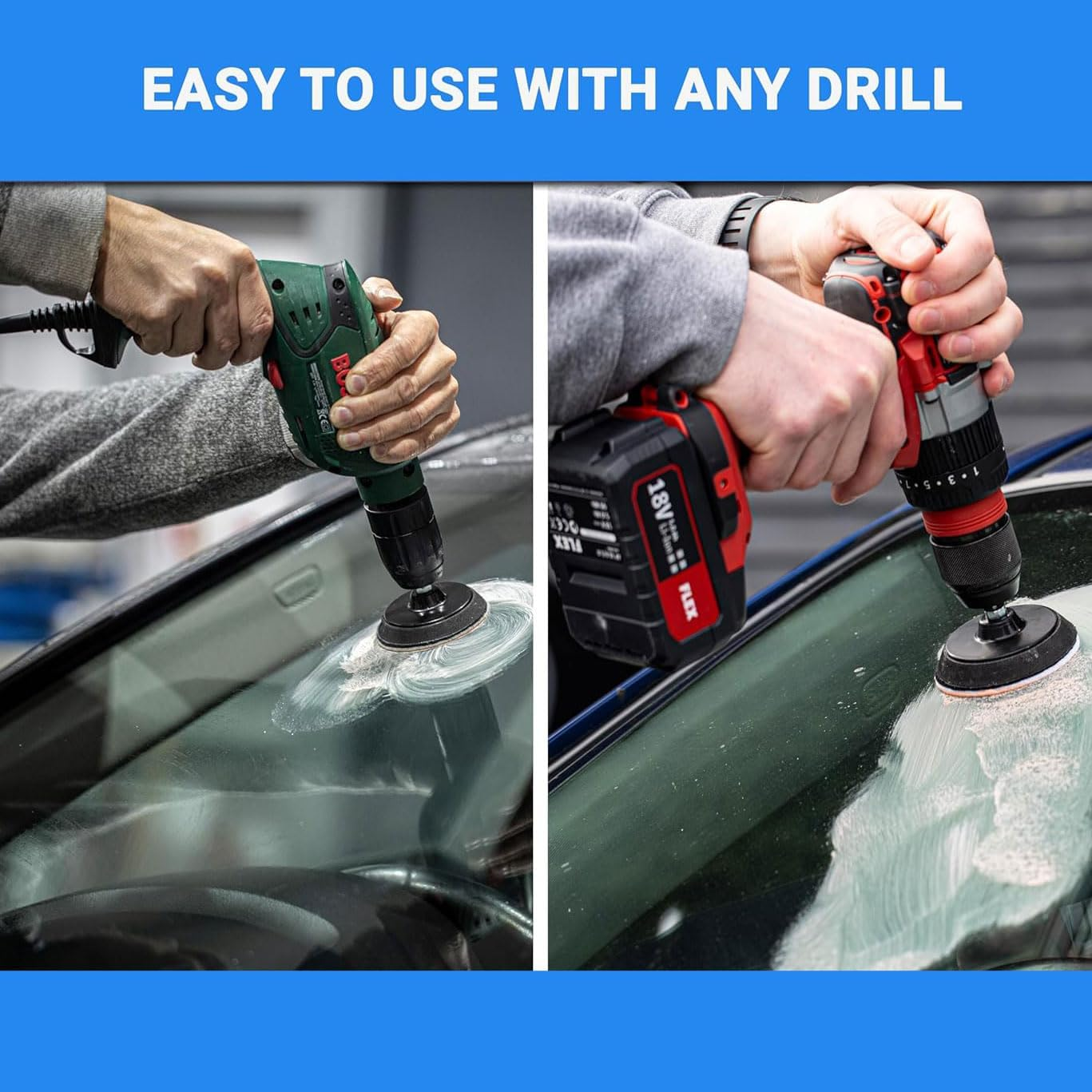 ✅ FAST & EFFICIENT: Quickly revitalize your windshields and car glass by removing wiper blade streaks, haziness and water damage with our efficient windshield polishing kit ✅ DEFECT REMOVAL: Eliminates imperfections, wiper blade damage, fine scratches, haziness, water spots, and limescale for crystal-clear glass ✅ FOR FINE SCRATCHES ONLY: Removes faint, shallow scratches that you can hardly feel with a fingernail. For deeper scratches, see our Scratch Removal kits ✅ RESTORES FULL VISIBILITY: Restores original glass smoothness, clarity, and shine, enhancing visibility and improving overall driving safety ✅ FOR USE WITH A DRILL: This kit is designed for use with an electric drill and includes a universal drill attachment for seamless integration ✅ EASY TO USE: Follow our easy, multilingual step-by-step polishing instructions with images for a hassle-free experience ✅ VIDEO TUTORIALS: Scan the QR code for access to step-by-step video guides, instructions, and tips to achieve the best results ✅ SAFE FOR ALL GLASS: Suitable for all glass, including mirrors, tempered and laminated glass; also works great for polishing boat glass, shower screens, aquariums, oven doors, kitchen hobs, and much more ✅ COMPLETE KIT CONTENTS: Includes a 3” (75mm) backing pad with drill attachment, two 3” felt polishing pads, 1.7oz (50ml) glass polishing compound, a glass cleaning cloth, and detailed instructions with images ✅ WHY TRUST US? Established in 2003, our expert technical team offers FREE advice and support, backed by over 20 years of experience and innovation in polishing and repair solutions Product Description