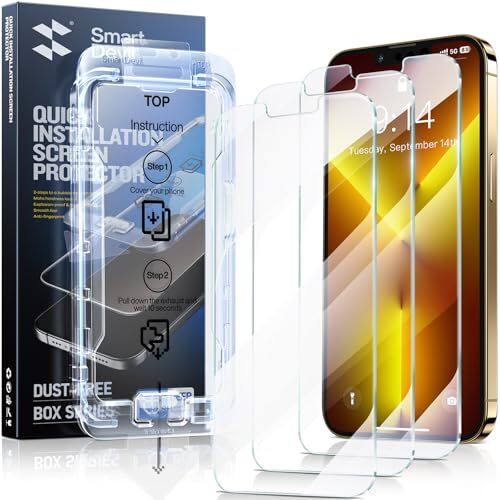 This screen protector set is a game-changer! Installation is a breeze with the alignment kit—just cover and pull for a perfect fit every time. No bubbles, no dust, just crystal-clear protection. The tempered glass feels smooth and durable, and the 3-pack ensures you’re always covered. Fast shipping and a great return policy make this a no-brainer purchase. Highly recommend for anyone with an iPhone 13, 13 Pro, or 14!