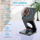 【Multi-Device Compatibility, Travel Essentials】Magnetic Foldable 3 in 1 Charging Station, 15W/10W/7.5W Charger for iPhone 15/14/13/12/Pro/Plus/Pro Max, 5W Portable Charger for Apple Watch9/8/7/6/5/4/3/2/SE, 2.5W for Airpods3/2/Pro, and for other devices such as Samsung Galaxy phones and earbuds. Its compact and foldable design makes it an essential travel accessory, providing efficient charging for your devices at home, in the office, or on the go. 【Efficient Wireless Charging】Say goodbye to tangled wires with this wireless charging station. Its powerful wireless charging technology ensures fast and stable charging for your iPhone, Samsung Galaxy, and other compatible devices, keeping them fully charged at all times. Simplify Your Life. 【Portable Design】Designed for travel, this charging station features a foldable design for easy storage and portability. Whether you're on a business trip or vacation, it fits conveniently in your luggage or backpack, allowing you to charge your devices anytime, anywhere. 【Multi-Functional Charging Station】Perfect for personal and family use, this charging station supports simultaneous charging for multiple devices. It eliminates the hassle of finding extra outlets, making it an ideal solution for keeping everyone's devices, including iPhone, Apple Watch, AirPods, and Samsung phones, charged and ready.Ideal for Family Use. 【Safe and Reliable】Equipped with advanced safety protection, this charging station offers overcharge, overheat, and short circuit protection, ensuring the safety of your devices during charging. High-quality materials and craftsmanship guarantee durability and long-term use. Whether you're charging any devices, you can trust this station to keep them safe and powered up.
