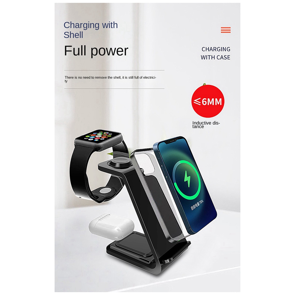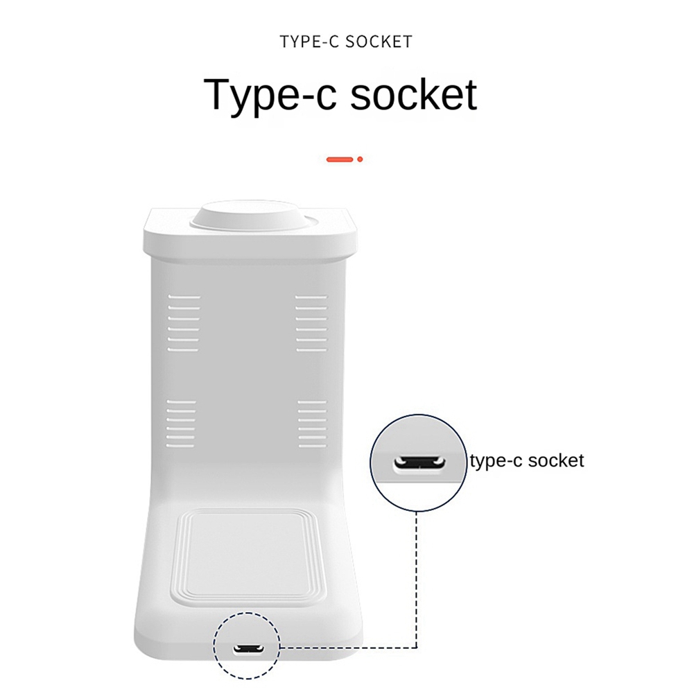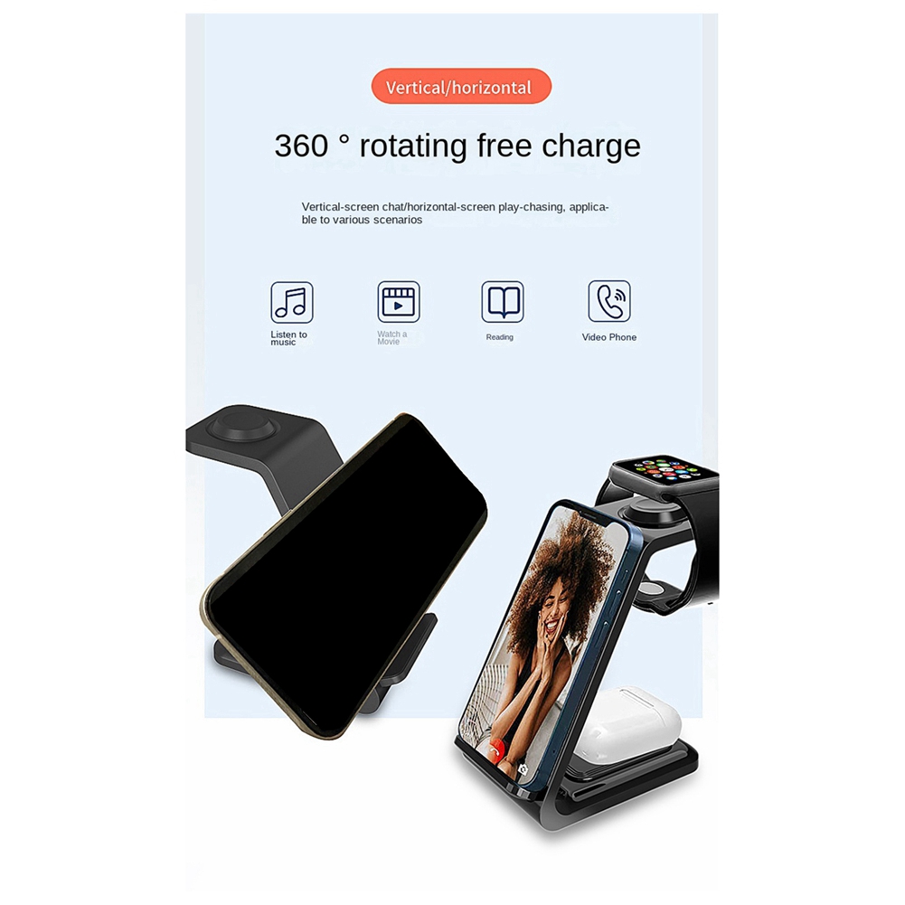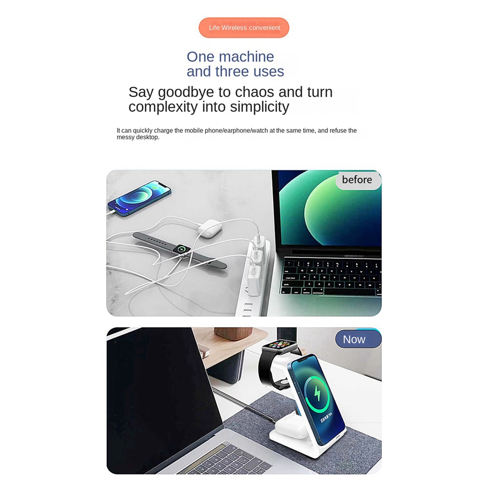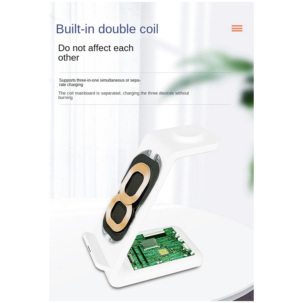 3 in 1 Wireless Charger Stand for //Watch Fast Charging Dock1601 1.One machine with three uses bid farewell to chaos and simplify complexity 2.Intelligent three core wireless is also fast charging 3.The built-in dual coil does not affect each other 4.Porous design for strong heat dissipation, intelligent heat dissipation, charging without damaging the device, and low temperature throughout the process 5.360 ° rotation for free vertical chat/landscape drama tracking, suitable for various scenarios Material: abs Input voltage/current: 5V/2A 9V/2A Support: 5W/7.5W/10W/15W Transmission distance: 2-6mm Headphone charging power: 5W Watch charging power: 3W Charging standards; Compatible with Q Charging efficiency: 75% Due to different batches, there may be differences in product appearance and printed text, which not affect use Colour:Black/White Package Contents: 1 x Wireless charging 1 x Charging Cable Only the above package content, other products are not included. Note: Light reflection and different displays may cause the color of the item in the picture a little different from the real thing. The measurement allowed error is +/- 1-3cm.