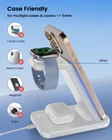 Charge 3 Devices Simultaneously: Hey there, Apple lovers! Prepare to be blown away by the ultimate charging solution. Designed exclusively for Apple enthusiasts, this wireless charging station can power up your iPhone, Apple Watch, and Air Pods simultaneously, eliminating the hassle of multiple chargers. Say goodbye to tangled cords and hello to a clutter-free desktop. And the best part? The wireless charger is compatible with a wide range of Apple devices for ultimate convenience. A Bonus QC 18W Fast Adapter: Need a blazing-fast boost? Look no further! Bid farewell to wait around for ages for your devices to charge. With an 18W fast adapter included, this charging station takes your Apple devices from zero to full battery in no time. Get back to your favorite activities with 30% faster charging than ordinary wireless chargers. The wireless charger is the perfect companion for your busy lifestyle. Life's too short to waste on sluggish charging! Charge in Portrait or Landscape: Charge your way, any way! Flexibility is at your fingertips. Embrace the perfect angle for ultimate charging convenience. Whether you're in a video conference or watching a movie, this wireless charging station has got you covered. Its dual-coil design allows for seamless charging in both horizontal and vertical positions. The charging station for Apple devices is also a versatile phone stand that keeps you entertained while charging. 100% Safe Charging & Sleep Friendly: Enjoy worry-free charging all day and night! Your safety is our top priority. That's why our wireless charger is equipped with multiple charging protections to ensure a secure and efficient charging process. The Sleep-Friendly LED indicators turn off within 20s automatically. Feel confident leaving this wireless charger stand on your bedside table overnight. Knowing that your devices are charging safely, and no more annoying distractions or bright lights when you're sleeping. Case-Friendly Design: Tired of constantly removing your phone case every time you need to charge? We hear you! This charging station for multiple devices is specially designed to work seamlessly with most protective cases. Just place your device on the 3 in 1 charging station and let the power flow through, even with the case on. Say goodbye to the inconvenience of constantly removing and reattaching your phone case. It's time for hassle-free charging on the go! Uncompromising Quality & Excellent Customer Support: Your satisfaction, our promise! We stand behind both the quality and performance of 3 in 1 wireless charging station. With rigorous quality checks and a commitment to customer satisfaction, you can shop with confidence. Should you have any questions or concerns about this 3 in 1 charging station, our dedicated support team is always ready to assist you. Experience a worry-free purchase with our commitment to excellence!