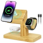 【3 in 1 Wireless Charger】Built-in three magnetic wireless charging pads allow you to charge at the same time for iPhone, Apple watch and AirPods. No worries about having to buy multiple chargers and charging cables cluttering your desktop. (Note: We recommend using a type-c charger with a power of no less than 20W, otherwise when all devices are charged, Charging will be slower.) 【Made of Natural Bamboo】Bamboo Charging Station is all 100% made with natural fast-growing bamboo, eco-friendly, has a unique look, smooth and sturdy surface, very comfortable and durable to use. The compact size helps you save space on your desktop, also perfect to place in office, bedroom, living room and other places as a decorative item. 【20W Fast Charger for iPhone】For different Apple devices, 3 in 1 Charging Station provides different output power for each charging pad. The maximum output for charging phones is 15W, for charging earphones is 5W, and for iWatch is 3W. (Note: The correct phone output power depends on your phone model.) 【Ensure Charging Safety】FCC, CE certification wireless charging station for Apple devices has a built-in smart regulation chip that provides overload protection, overcharge protection, short-circuit protection, temperature control and more to ensure your charging safety. 【Widely Compatible】This 3 in 1 charging station compatible for iPhone 15/15 Plus/15 Pro/15 Pro Max, iPhone 14/14 Pro/14 Plus/14 Pro Max, iPhone 13/13 Plus/13 Mini/13 Pro/13 Pro Max, iPhone 12/12 Plus/12 Mini/12 Pro/12 Pro Max, for Apple Watch 8/7/6/5/4/3/SE, Airpods Pro/3/2 wireless. We suggest using it without a case or with a magnetic case. Not supported for iPhone 1-11 and phone cases over 4mm thick. 【Great Customer Service】Package contains 1x 3 in 1 wireless charger for apple, 1x Type-c cable, 1x User Manual. is committed to providing customers with the after-sales service, if you have any questions, please feel free to contact us, we will provide you with reasonable solutions within 24 hours. Meanwhile, this is a perfect gift for parents, kids, lover, friends. 【Note】For the iPhone 8-11, you need to use a magnetic case to ensure proper functioning. If the wall charger output power is less than 18W (e.g. if the multi-port charging adapter is charging multiple devices at the same time), the apple watch charging area may not work properly. 【Scenes】Perfect for company, office, meeting/conference room, home, kitchen counter, desktop, living room, bedroom, classrooms, hotels, restaurants, etc. Ideal gift for Christmas, Birthday, etc.