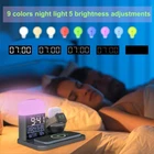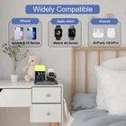 Wireless Charging - Suitable for phones, earphones, and watches, compatible with various devices, providing efficient and convenient charging for your smart devices. Alarm Clock Display Built in LED display clearly shows the current time, helping you keep track of every moment accurately. Date Display Integrated display screen allows you to easily check the current date without any additional devices. Temperature and Humidity Display Real time display of the current environment's temperature and humidity, providing a more comfortable living environment for you. Three Alarm Settings Supports setting three independent alarms to meet your different schedule needs. Whether it's a morning wake-up call or a reminder for important tasks, it can deliver accurately. Snooze Mode Equipped with a snooze mode, allowing you to enjoy a few extra minutes of sleep when the alarm goes off in the morning, helping you wake up more easily. Sunrise Mode The sunrise mode simulates natural sunrise light, gradually waking you up, making getting up more natural and comfortable. 9 Color Night Light Equipped with nine color night lights to meet different lighting needs for various scenarios. Whether it's for cozy bedtime reading or creating a romantic nighttime atmosphere, it can easily achieve. Stepless Brightness Adjustment With stepless adjustment, you can freely adjust the brightness of the night light, ensuring the most comfortable lighting in any environment. This multi-functional wireless charger is not only an efficient charging device but also a smart assistant in your daily life. Whether at home, in the office, or on the go, it provides comprehensive services, enhancing your quality of life. Get one for yourself and your family now and enjoy the convenience and comfort brought by technology! 【Multi-Functional Charging Station】This charger allows you to wirelessly charge for iphone,for Apple Watch, and for AirPods simultaneously, saving space and reducing clutter from cables. It’s perfect for modern lifestyles, whether at home, in the office, or on the go. 【Smart Alarm Clock Design】The large screen displays are clear and easy to read, featuring three alarm settings and snooze mode for flexible wake-up times to suit your schedule. Additionally, the sunrise mode gradually increases light intensity, helping you wake up naturally and start your day on a positive note. 【Colorful Night Light】Equipped with 9 RGB color options and two modes, you can easily adjust brightness and color to match your mood or occasion. Whether it’s for a relaxing reading session or a romantic dinner, you can effortlessly create the perfect ambiance. 【Temperature and Humidity Display】This feature provides real-time readings of the room’s temperature and humidity, helping you maintain a comfortable and healthy environment. It’s essential for monitoring indoor comfort levels, making it ideal for any living space. 【Safety Assurance】Built-in safe charging technology and short circuit protection ensure the safety of your devices during charging, preventing overheating, overcharging, or short circuits, allowing you to use it with peace of mind. 【Premium Craftsmanship】The metal paint process provides a higher quality texture and feel, making it more durable and visually appealing compared to common plastic products. It seamlessly integrates into any room decor, serving as a stylish home accessory.