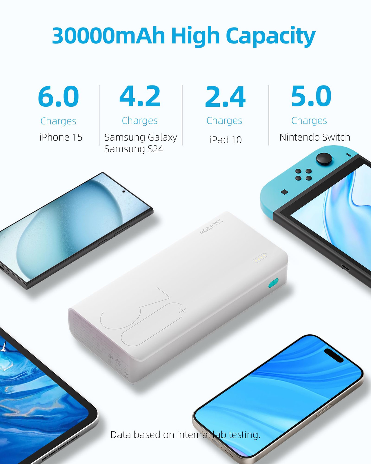 This power bank is a game-changer! The massive 30,000mAh capacity keeps my phone, tablet, and earbuds charged for days, and I love that it can power three devices at once with different ports. The build feels solid, and it holds its charge well even after weeks of occasional use. Perfect for travel or emergencies when outlets are scarce—no more low-battery anxiety! Fast charging works as promised, and the LED display is super handy for tracking remaining power. Definitely worth every penny for heavy device users!