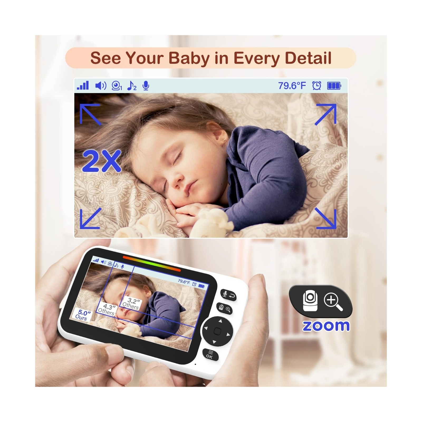 Brand New Baby Monitor with 30-Hour Battery, 5" Large Split-Screen Video Baby Monitor with Camera and Audio, Remote Pan/Tilt/Zoom Camera, Two-Way Talk, Night Vision, Lullabies, No WiFi Manufacturer model: BL9052 Advanced Version and Extended Battery Life: Enjoy 16 hours in Video Mode and 30 hours in Voice Mode! Equipped with a large 5" LCD screen, the baby monitor allows you to have a larger viewing angle to pay attention to your baby. With the split-screen mode (audio-off), it can simultaneously display the video captured by two cameras. Pan/Tilt/Zoom Camera: The baby camera can rotates 320 horizontally and 120 vertically which provides you with clear real-time video and audio of your baby. Also it has a 2X zoom function to allow for clearer visuals of your baby. Under full screen mode, press and hold the key around 2 seconds to operate zoom in/out. Enhanced Infrared Night Vision and Energy-Saving Mode: After comprehensive upgrade with infrared sensors, the video baby monitor automatically turns into night vision when low light is detected. In VOX mode, the screen will sleep to save power so it can be used for 30 hours. Once a sound is detected, it will automatically activate so you'll have more time to focus on the private things. 8 Languages and Remote Signal Coverage: The baby monitor has eight built-in languages for you to choose, which can offer you more convenience. You can watch your baby even from anywhere in the house as the baby monitor has long range of up to 1000 feet open space. The date and specific time are directly displayed on the device, making it more convenient to take care of children. Description Shipping and Handling Please allow 5-7 business days for the package to arrive, regardless of buyer location within the US. We will provide an online tracking number to you once the item has been shipped. It may take a few business days for our automated system to process the tracking number onto eBay. However, this will not affect the shipping times. Return Policy All our products are brand new and sealed. All items qualify for returns within 30 days of receipt. Feedback We take our reputation seriously. If you have any questions or concerns, please contact us and we will respond back to your message within 24 hours.
