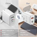 30W Fast Charger Block, LAUDTEC Wall Charger with 3 Ports PD QC Power Delivery Fast Type C Charging Block, Power Adapter for All Type C & IOS Devices with One Cable Product Details Brand: LT LAUDTEC Connectivity Technology: Lightning,Usb Connector Type: USB Type C Compatible Devices: Cellular Phones Compatible Phone Models: Huawei,Iphone,Xiaomi Included Components: 3-port Charging Block*1, Instruction*1, Lightning to Type-C Cable*1 Special Feature: Travel, Lightweight Design, Short Circuit Protection, Fast Charging/ Lightweight Design / Retractable Plug/ Short Circuit Protection/ Travel, Retractable Plug See more Color: White Input Voltage: 240 Volts (AC) Mounting Type: Wall Mount Package Dimensions: 4.8 x 3.15 x 1.34 inches Item Weight: 3.84 ounces Date First Available: October 24, 2022 Manufacturer: Shenzhen Zhiyou Precision Electronics Co., LTD Country of Origin: China Own One = Own All: A 30W charger block contains 3 ports, USB-Lightning+USB-Type-C+USB-A, you can use a USB lightning to C cable and USB A to charge any device. Fast Charging: You can enjoy 30W fast charging using one of the 3 ports alone.Usb c charger block can charge the iPhone 14 from 0 to 60% in just 30 minutes. When charging two devices at the same time, the power delivery can be up to 15W. Powerful Functions: Laudtec 30W Fast Charge Adapter works with most phones, tablets, computers and more, Just like iPhone, Samsung, HUAWEI, XIAOMI, iPad, AirPod, Switch, MacBook Pro and other. Laudtec 30W usb c power adapter has the power needed to charge all personal devices. Lightweight and convenient: The special process makes the 30W fast charger block smaller and more powerful, and the foldable plug can save 35% of space. You can even put it in a small pocket. 6FT Charging Cable: USB C to lightning Charging Cable, You can charge your device anytime with the 30W Wall charger.