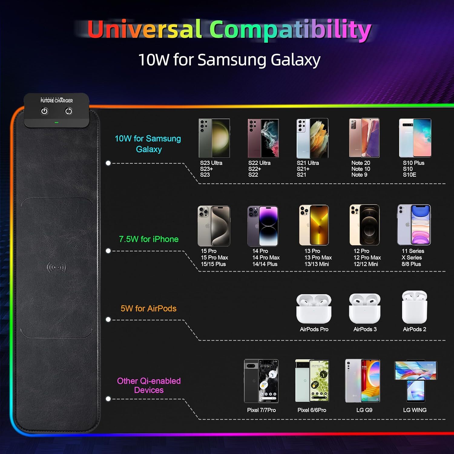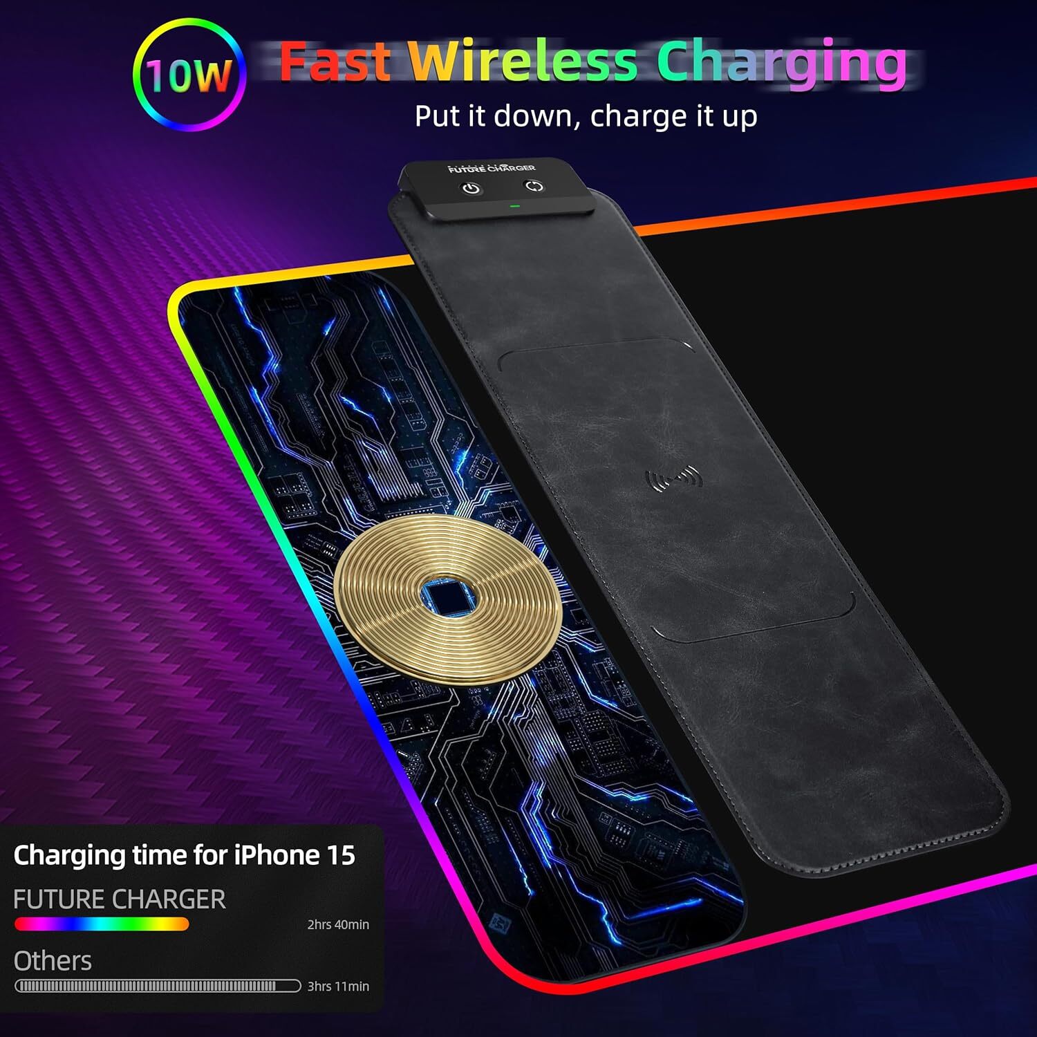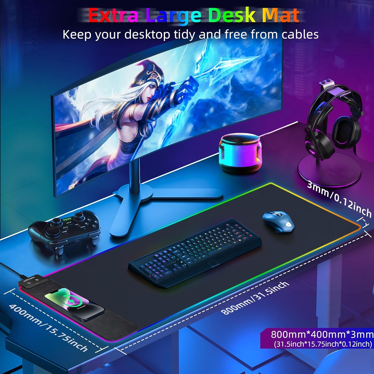This RGB gaming mouse pad is a game-changer! The 31.5"x15.7" surface gives plenty of room for smooth mouse movements, and the 10W RGB lighting adds awesome mood lighting that syncs with my setup. The stitched edges prevent fraying, and the non-slip base keeps it firmly in place during intense gaming sessions. FutureCharger nailed it with this high-quality pad that looks as great as it performs—the perfect blend of style and functionality for any serious gamer or desk enthusiast!