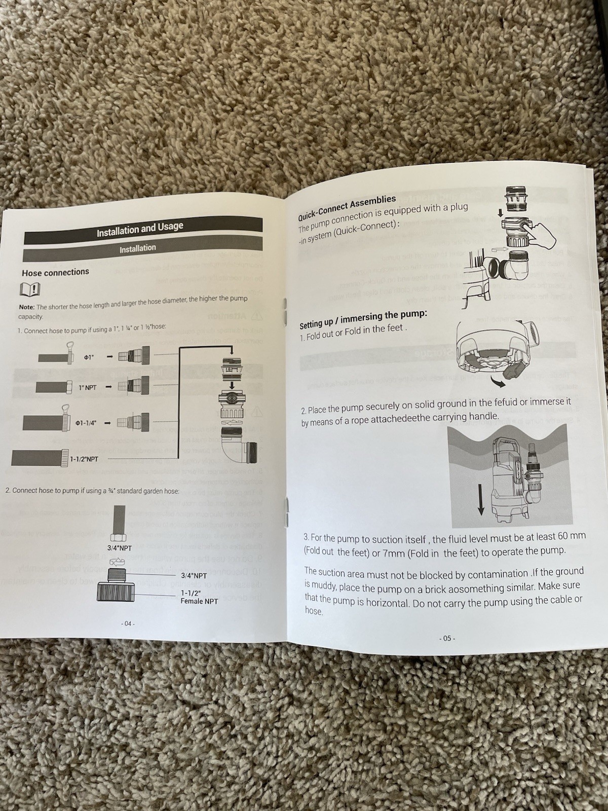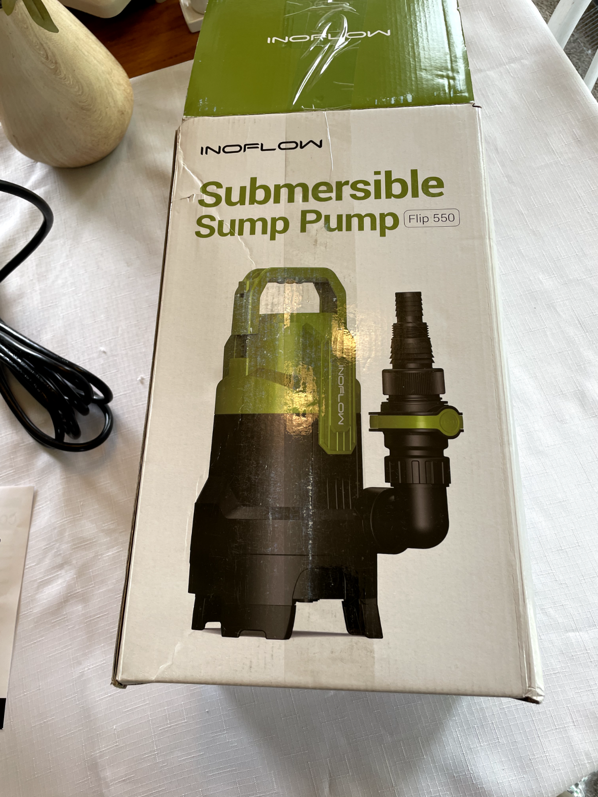 The New Submersible Sump Pump 3/4 HP/ Utility Water Pump/3430 GPH. inoflow Flip 550 is a versatile and powerful unit designed for various applications. With a maximum flow rate of 3430 GPH and a maximum head lift of 27 ft, this pump is suitable for large-scale water transfer tasks. Its submersible design and compact size make it easy to install in tight spaces, while the universal compatibility of the 1" NPT, 1" hose, and 1-1/4" hose and more options ensure flexibility for different setups. Made by Inoflow, a reputable brand, this pump is a reliable choice for your pumping needs.