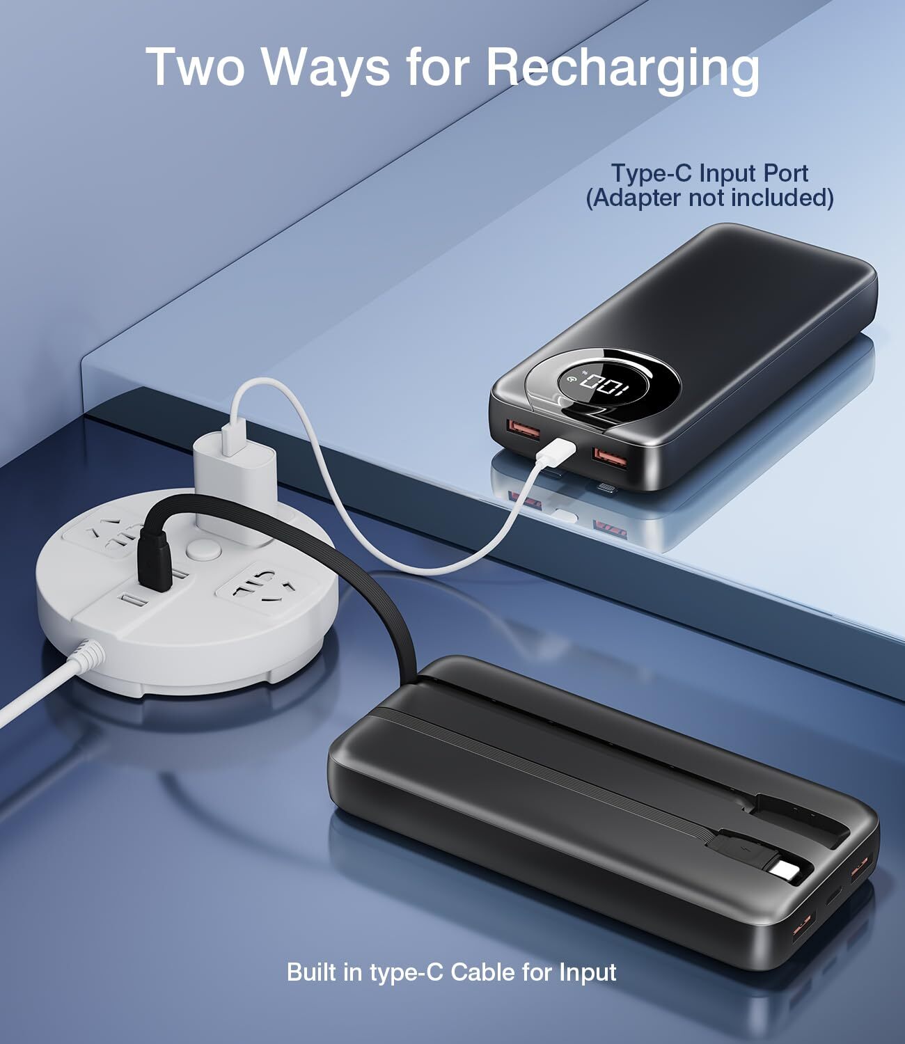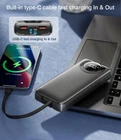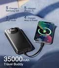 [Universal ] Features cable type( iOS/Type-C/Micro/Type-A), port type(USB A, USB C, Micro-USB). with almost all smart devices on the market like iphone, Samsung, ... It also supports small current mode like watches, . Offering strong versatility when travel. It is Not that bulky as 50K, 60K ones and not that unpracticle as 5K, 10K ones when out. If you are looking for a practicle meanwhile not so heavy and bulky power bank, this is THE could consider [Buit-in IN&OUT] is the only 5% of power banks on the market that got a USB-C IN&OUT port, furthermore. power bank 35000 also upgraded to IN&OUT with buit-in cable, be can be recharged with No need to bring any extra cables when out and recharged itself under 22.5W/18W high speed, save many time compares to other large capacity power bank(most of the product on the market only can be recharged under 10W/12W) [5 Outputs & 2 Inputs] Supporting simultaneous charging for up to 3 devices. Can charge and recharge with no extra cables. 5 outputs(1 built in iOS cable, 1 buit-in Type-C cable, 1 Type-C port, 2 Type-A ports with bonus extra type-A to type-C cable); 2 inputs(1 buit-in Type-C cable, 1Type-C port ) [3A Fast Charge] With large capacity 35000 mAh and 3A fast charging capability, it meets the needs for use of multiple devices. Featuring 22.5W ultra fast charging technologies, charge an iPhone to 55% in just 22-30 minutes, which is 3-5 times faster than conventional chargers. A good helper for long-term travel and for users for those who have high power consumption devices charging needs [Safe Charging] Elegant LED digital screen displays the battery power even accurately to 1%. Automatically start with cable plugged in. This full 35000mAh battery portable charger can charge: iPhone 8 12 Times/Samsung S8 8 Times/iPhone 15 7 Times/Samsung S22 7 Times/65 Times. Note: This power bank is NOT allowed on a plane, >100Wh [What You Get] 35000 mAh Portable charger with 2 built-in cables 1 extra USB-C to USB-C cable, 1 User Manual, 24 months care. with professional technical support and friendly to ensure users have a satisfactory experience