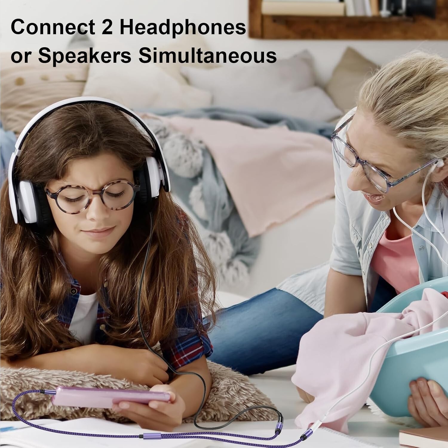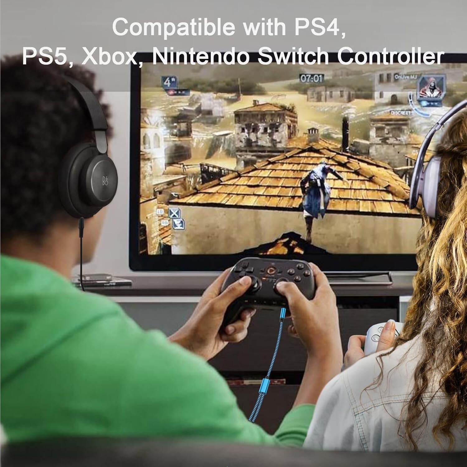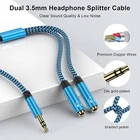 Headset Splitter Adapter,Braided Extension Cable Audio Stereo Y Splitter 3.5mm USB-C Audio Sharing Splitter: This adapter converts a single USB Type-C port into two 3.5mm female AUX ports, allowing you to connect two headsets simultaneously. Perfect for sharing music, movies, and games with family and friends on devices like smartphones, tablets, and computers. Wide Compatibility: The 3.5mm headphone jack adapter is compatible with a wide range of devices, including smartphones, tablets, laptops, gaming consoles (PS4, PS5, Xbox, Switch), and other devices with a 3.5mm AUX port. Hi-Fi Stereo Sound: Featuring 24K gold-plated connectors and oxygen-free copper wiring, this splitter reduces signal interference, minimizes noise, and delivers superior stereo sound through both outputs. Durable and Portable Design: Built with double-braided nylon, pure copper shielding, and aluminum housing, this splitter is durable and long-lasting. Its compact, lightweight design makes it ideal for daily use and travel. Package Includes: 1 x 3.5mm Headphone Y Splitter Aux Extension Cable (Blue) Customer support available 24/7 for any questions or concerns.