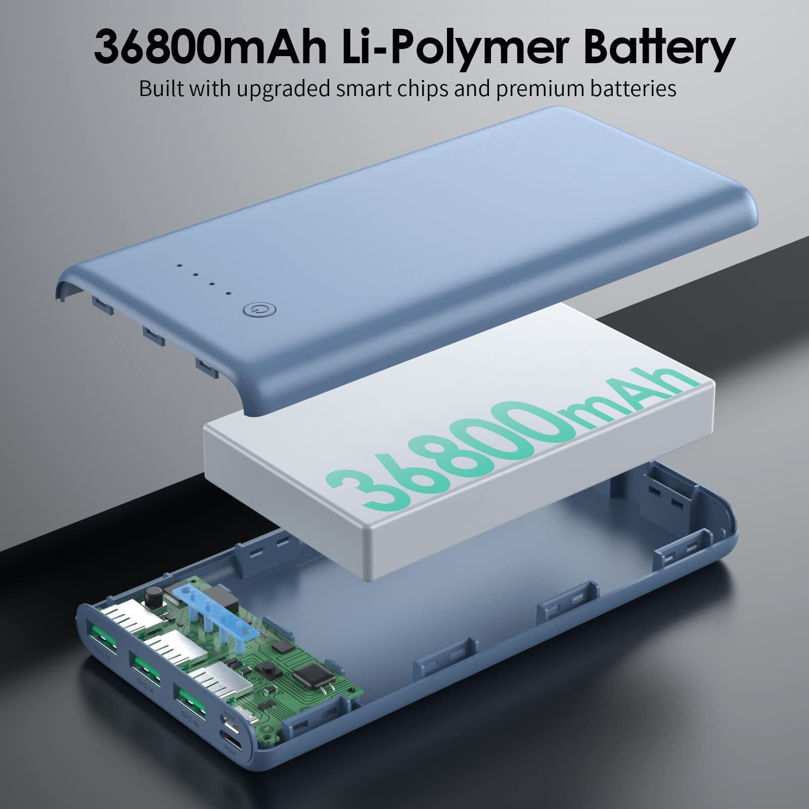Portable Charger 36800mAh, 4 Outputs Power Bank, Dual Input 5V/3A External Battery Pack,USB-C in&out High-Speed Charging Backup Charger ❤36800mAh Ultra-High Capacity Power Bank❤ 36800mAh Power Bank can provide above 6 charges for your iPhone 12 / 11; 5 charges for iPhone 12 Pro Max ; Other Android Phone: Multiple times. Suitable for a business trip or other outdoor activities. ❤Universal Compatibility❤ Compatibile with iPhone 16/15/14 Series /13 Pro Max / 13 Mini / 13 / 12 Pro /12 /11 / XS / XS Max / XR /8 Plus, Samsung S20 Google LG, Galaxy Android smartphones, Bluetooth headphone, speaker, fitness tracker, smart watch, tablets and other USB-charged electronic devices. ❤4 Smart Indicators show the power status as 25% -50% -75% 100%❤ Specifications: Capacity: 36,800mAh 3 USB Output:5V/2.1A Type-C Input/Output:5V/3 A Micro Input:5V/2.1A Size: 6.1*3.1*0.87 Inch ( Same length with iPhone 12 Pro) Weight: 381g Package Content: 1 x Power Bank 1 x Micro USB Cabel 1 x User Manual Pls Notes: 1: Please charge power bank in full before you first using it. 2: Use the coming cable or original cables will help power bank used long time. 36 Month Warranty provide 60 Days Money Back, 36 Month warranty and friendly easy-to-reach support.Clicking the yellow "Add to Cart" button, Add more happy for your life. 【Ultra-high Capacity 36800mAh】36800mAh power bank with ultra-high capacity can Keep Your phone running all day. Without extra worry about low phone battery. Ideal to take it for play game, trip and listen music. 【4 outputs & 2 Input】This power bank built-in 4 outputs (3A USB C+ 3 USB ) and 2 inputs ( 3A USB C + Micro USB ) ; you can charge 4 devices simultaneously. Suitable for business, travel, going out. 【Super Safety - Intelligent Controlling IC】 Newest design upgraded version 36800mAh power bank with safety polymer battery, built-in intelligent chip can protect your devices against overcharge, over discharge, excessive currents, short circuits or overheating, provided stable charging. 【Universal Compatibility & Smart LED Indicator】Portable Charger is widely compatible with iPhone, Samsung Galaxy, Pixel smartphone and smaller devices such as bluetooth earbuds, fitness tracker and so on. 4 blue LED indicators show the power left as 25%-50%-75%-100%, no more guessing whether need to charge it or not. 【What You Get】1 x 36800mAh portable charger, 1 x Micro USB Cable ,1 x User manual and 3 Years warranty lifetime technical support.If you have any question, please feel free to contact us.