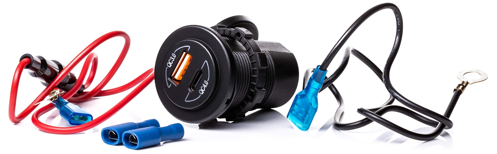 36W Socket Dual USB Type C PD 3.0 (36W) + USB A QC4.0 (18W) Fast Charger for Car, Boat, Marine & RVs Product Details Brand: Stephanie Imports Connectivity Technology: USB Connector Type: USB Type C Compatible Devices: Cellular Phones Compatible Phone Models: Samsung Galaxy, Apple iPhone, Google Pixel Special Feature: Fast Charger Color: Black Input Voltage: 24 Volts Amperage: 6 Amps Total USB Ports: 2 Package Dimensions: 2.91 x 2.13 x 2.05 inches Item Weight: 0.81 ounces Item model number: S7136_USB Date First Available: September 5, 2019 Manufacturer: Stephanie Imports Country of Origin: China This dual USB port socket car charger packs a punch! The 36W USB Type-C port supports both Power Delivery (PD) and Quick Charge 4.0 and the 18W USB A port supports Quick Charge (QC) 3.0. Simultaneously charge multiple devices at super charge speeds for a maximum combined output of 6A/36W. Both ports, when used at the same time, provide 18W each of power. Plug only one device into the USB Type-C port to get 36W. Will easily install in a standard 12/24V socket that is found in cars, boats and other watercraft, motorcyles, ATVs and RVs. Most common installation location is the cigarette lighter socket which is 1.15" to 1.25" in diameter. Includes a 1.6 ft cable, 2 extra insulated terminal connectors with and 1 spare fuse. Efficient charging means your phone, tablet, dash cam and more is re-charged up to 5X faster than standard chargers, saving you crucial time on your rides. With Power Delivery (PD) offered through the USB C port and Quick Charge (QC) through the USB A port, this charger is ideal for both Apple and Android devices. Either install in a standard power outlet found in cars or drill your own 1.2" hole to install in customized location. Upon installing, make sure to match negative and positive poles to their corresponding values on your vehicle fuse box or key switch for ATVs. Make sure to tighten attached nut to secure the socket charger in place. Want a more powerful 60W version? Search for B08XY26ZP9 This dual USB port socket car charger has been designed to help you charge smartphones, dash cams, tablets and other electronics via USB Type-C Power Delivery (PD) and USB A Quick Charge (QC) enabled ports.This dual USB port socket car charger packs a punch! The 36W USB Type-C port supports both Power Delivery (PD) and Quick Charge 4.0 and the 18W USB A port supports Quick Charge (QC) 3.0. Simultaneously charge multiple devices at super charge speeds for a maximum combined output of 6A/36W. Both ports, when used at the same time, provide 18W each of power. Plug only one device into the USB Type-C port to get 36W.Will easily install in a standard 12/24V socket that is found in cars, boats and other watercraft, motorcyles, ATVs and RVs. Most common installation location is the cigarette lighter socket which is 1.15" to 1.25" in diameter. Includes a 1.6 ft cable, 2 extra insulated terminal connectors with and 1 spare fuse.Efficient charging means your phone, tablet, dash cam and more is re-charged up to 5X faster than standard chargers, saving you crucial time on your rides. With Power Delivery (PD) offered through the USB C port and Quick Charge (QC) through the USB A port, this charger is ideal for both Apple and Android devices.Either install in a standard power outlet found in cars or drill your own 1.2" hole to install in customized location. Upon installing, make sure to match negative and positive poles to their corresponding values on your vehicle fuse box or key switch for ATVs. Make sure to tighten attached nut to secure the socket charger in place.Color: BlackSize: 1.9" X 1"Weight: 6 ozPackage Contents: 1X Socket USB C Charger, 1X 1.6 ft Cable, 2X Insulated Terminal Connectors and 1X Spare Fuse