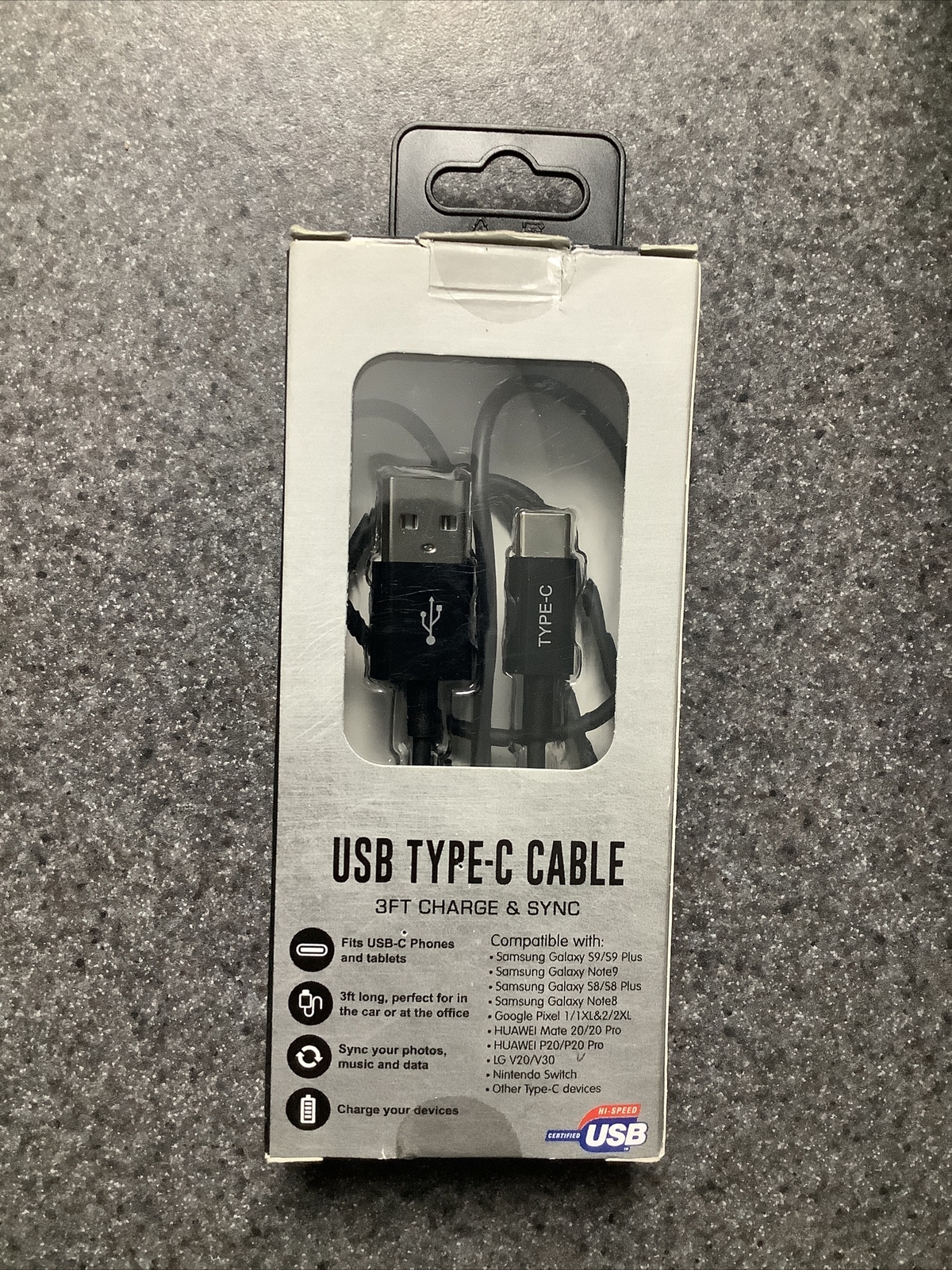 USB-C Cable 3Ft Charge & Sync - Black. Shipped with Standard Shipping. Opened used product in good condition for Samsung, LG, Nintendo Switch Track Page Views With Auctiva's FREE Counter