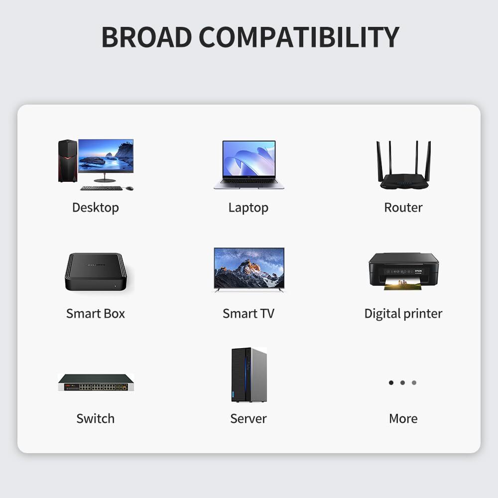 Cat6 Ethernet Cable 3 Feet 10 Pack Network RJ45 Cat6 Internet Patch Cable, Unshielded, Black About the Product Key Features Cat 6 Performance: TIA/EIA-568C.2 compliant and UL listed, conductors are applied 24 AWG stranded copper wire provides up to Cat6 10-Gigabit Ethernet, backward compatible with 10Base-T, 100base-tx(fast Ethernet) and 1000Base-T (Gigabit Ethernet) for 8P8C cat5e and Cat5 cable. Premium Quality: Gold-plated connectors increase transmission stability and durability for daily insertion and removal. UL listed with high quality CM grade PVC material further improves durability of the cable for both in-wall and out-wall use. Compatibility: RJ45 Ethernet patch cable with standard size RJ45 connectors(0.905*0.454*0.315 inch), which can plug in and out more efficient, provides universal connectivity for LAN network components such as PCs, laptop, computer servers, printers, routers, switch boxes, network media players, NAS, VoIP phones, etc. Length: Length does not include connectors and the injuction mold tail, which can help to better estimate and purchase the required length before wiring. Multiple pack and different colors choose can help you to manage your network project easier. Delivery Information Our shipping is prompt and secure. Orders are dispatched within 1-2 business days. It should take 3-5 business days for the product to reach your destination (Saturday and Sunday excluded). We do not ship to a different address. we will ship to the address you provide on the ebay only. Please check your address before purchase. Return Policy Returns are accepted within 30 days if you are not completely satisfied. Refunds are issued back to your original payment method. Items must be returned in their original condition and packaging. Payment Options We accept PayPal, credit cards, and other payment methods supported by eBay. Please ensure your payment details are up-to-date to avoid any delays. Your Feedback Matters We appreciate your feedback. If you're happy with your purchase, please consider leaving a positive review. Contact Information If you have any queries or require further assistance, please contact us via eBay messages.