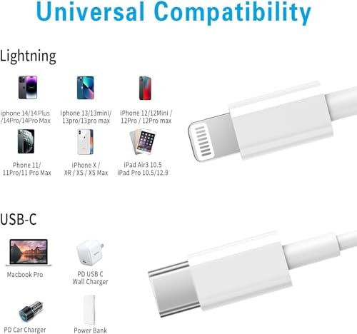 These USB-C to Lightning cables are a game-changer! Fast charging works perfectly with my iPhone 13, and the 6ft length gives me plenty of room to move around. Love that they're MFi certified—no more annoying "unrecognized accessory" warnings. The 3-pack is such a great value, and the white color looks sleek. Super durable too—no fraying after months of use. Arrived quickly and the seller was easy to contact. Highly recommend for anyone needing reliable charging cables!
