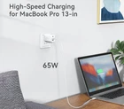 【65W Fast Charging】 This 65W USB C charger offers fast and efficient power to your laptops and could fast charge your MacBook Pro 13 at full speed, reducing downtime and maximizing your productivity. 【Compact and Portable】 Advanced GaN technology reduces this fast charging block to 57% smaller than standard 65W chargers, making it perfect to fit into a pocket or bag to carry with you everywhere. A foldable plug enhances portability and prevents scratching your laptop. 【One for All】This wall charger is compatible with MacBook Pro 14/13, MacBook Air, Dell XPS 13 Plus, HP Spectre x360 13.5, Google Pixelbook Go, ThinkPad T14 Intel 14", iPad Pro 12.9, Galaxy S21, and more smartphones, tablets, USB-C laptops, game consoles, power banks, etc. 【3 Devices at Once】 This fast charger features two 65W USB-C ports and one 22.5W USB-A port to fast charge 3 devices simultaneously at optimal speeds, ending outlet clutter and bringing you a neat workplace. 【Maximum Protection】This GaN fast charger features intelligent power allocation to deliver the most optimum power for your device, and multiple-functional protections safeguarding your loved devices from over-voltage, over-current, over-heating, and short-circuiting.