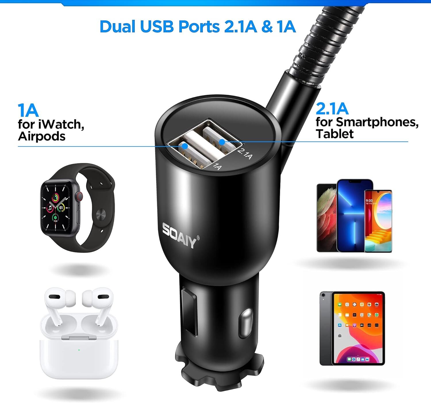 BEST PRICING FREE SHIPPING HIGH QUALITY 3 in 1 Cigarette Lighter Car Mount Voltage Detector Center Console Window Dual DETAILS For iPhone 13/12/11/Pro Max/Xs Max/Xr/8 Plus, OnePlus Series, Samsung Galaxy S21 Ultra 5G/ S21+ 5G/ S21 5G/ Note20 Ultra 5G Most Type of Smartphones. NOTE: If your product is not returnable , please remember to contact us seller ,we will help you get refund or replacement,thanks! ▶【3-in-1 Multifunctional】- Car mount with charger , additional led display screen car voltmeter circularly shows the vehicle's battery voltage, device's charging voltage and charging current in real time, easy to monitor the health of your vehicle's battery and allows you to know when it's time for a replacement ▶【2 USB Charging Port】- Dual 2 USB charging ports, 2.1A + 1A maximum 3.1A output allows you to charge 2 devices simultaneously. Intelligent protection circuit protects against over-voltage, over-current and over-heat. ▶【Flexible goose neck and 360 degree rotating】 - Allow you to position your phone or GPS horizontally, vertically, or tilt in any direction, provide the optimal viewing angle, view your device at any angle or orientation while driving ▶【Fit Most Cellphones】 - 1.5”-3.4” wide extendable grip with Non-slip feet and surface keeps your phone tightly locked in and prevents your device from falling or moving around without leaving a scratch. one press side button release design for one-handed operation Shipping Shipping Policies: We ship to the Lower 48 States only (Does NOT include Hawaii or Alaska) We cannot ship to PO Boxes/APO's We cannot combine shipping. No Local Pickup. Payment & Return PAY SAFE: PAYPAL PAYMENT IS ACCEPTED We offer a 30 day return policy. Your satisfaction is guaranteed! If for any reason you are unhappy with your item, just return it within 30 days for a full refund, minus shipping cost. Please contact us prior to initiating a return so that we can issue you a refund authorization. DELIVERY TIMES Domestic lower 48 free shipping is expedited. We have many different shipping locations depending on the product you buy and the shipping location that you choose. We try to ship most items within 24 hours of payment Monday-Friday. Most orders are in transit for two days but some may take longer. If you have a specific time frame please contact us before you make the purchase. For Shipping to Alaska, Hawaii & Puerto: Delivery times may vary. Usually it takes around 5-7 days to ship your item, but it can take up to 15 days in some special cases. Feedback 100% satisfied customers. It says it all. BEST PRICING FAST SHIPPING HIGH QUALITY