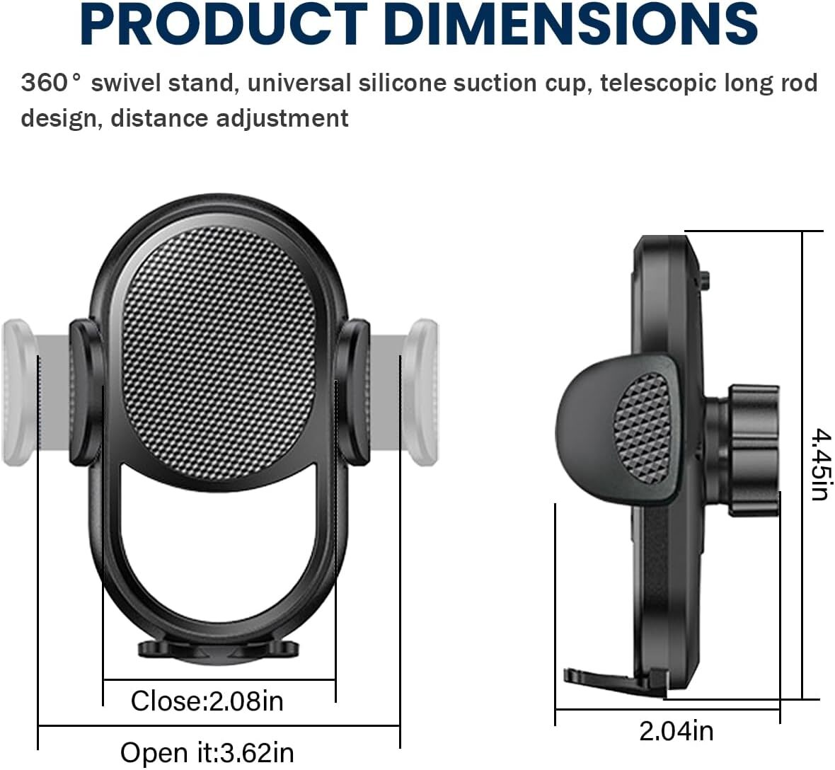 BEST PRICING FREE SHIPPING HIGH QUALITY Car Phone Holder Mount 3 in 1 Phone Mount for Car Dashboard Windshield Air Vent DETAILS 【3 in 1 Phone Holder for Car】: Our car phone holders with suction mounts and outlet clamps can be mounted on the dashboard, windshield or vent, providing you with an easy way to securely secure your phone and are the ideal car accessory. 【360° Angle Available】: A 360° spherical joint and a retractable expansion arm allow you to adjust the phone to any Angle. With a telescale range of 6.1-8in, this car phone stand allows you to use your phone in portrait and landscape mode, allowing you to see the phone screen more easily and clearly. It will not block the line of sight to ensure safe driving. 【Easy Operation】: Our car phone holder is made of ABS and silica gel, durable and practical. It is easy to install and use. 1. Insert the nut into the universal ball. 2. Insert the universal ball into the support and tighten the nut. 3, lift the pressure valve, press and lock it. 4. Place the phone on the phone holder to make it secure. 【Protect Your Phone】: The car phone stand is covered in a thick layer of silicone. The unprecedented design makes mobile devices scratch free, providing multiple protections for your phone. The internal mechanical structure ensures that the arm holds the phone firmly. Don't worry about your phone, it won't fall off even on the roughest of roads. 【Wide Compatibility】: Our mobile phone holders are widely used in cars, SUVs, trucks, taxis, pickups and other types of vehicles, suitable for any smartphone, as long as your phone size is 4.7-6.9 inches. Check the details before buying to make sure it fits your car and phone. Shipping Shipping Policies: We ship to the Lower 48 States only (Does NOT include Hawaii or Alaska) We cannot ship to PO Boxes/APO's We cannot combine shipping. No Local Pickup. Payment & Return PAY SAFE: PAYPAL PAYMENT IS ACCEPTED We offer a 30 day return policy. Your satisfaction is guaranteed! If for any reason you are unhappy with your item, just return it within 30 days for a full refund, minus shipping cost. Please contact us prior to initiating a return so that we can issue you a refund authorization. DELIVERY TIMES Domestic lower 48 free shipping is expedited. We have many different shipping locations depending on the product you buy and the shipping location that you choose. We try to ship most items within 24 hours of payment Monday-Friday. Most orders are in transit for two days but some may take longer. If you have a specific time frame please contact us before you make the purchase. For Shipping to Alaska, Hawaii & Puerto: Delivery times may vary. Usually it takes around 5-7 days to ship your item, but it can take up to 15 days in some special cases. Feedback 100% satisfied customers. It says it all. BEST PRICING FAST SHIPPING HIGH QUALITY
